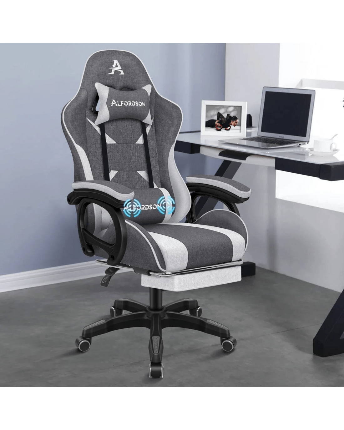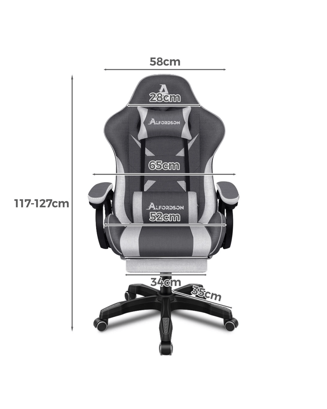 Sold by Aussie Union GroupAlfordson Gaming Chair Office Massage Computer Fabric Seat Racing - Grey