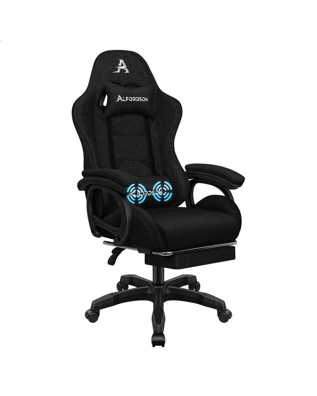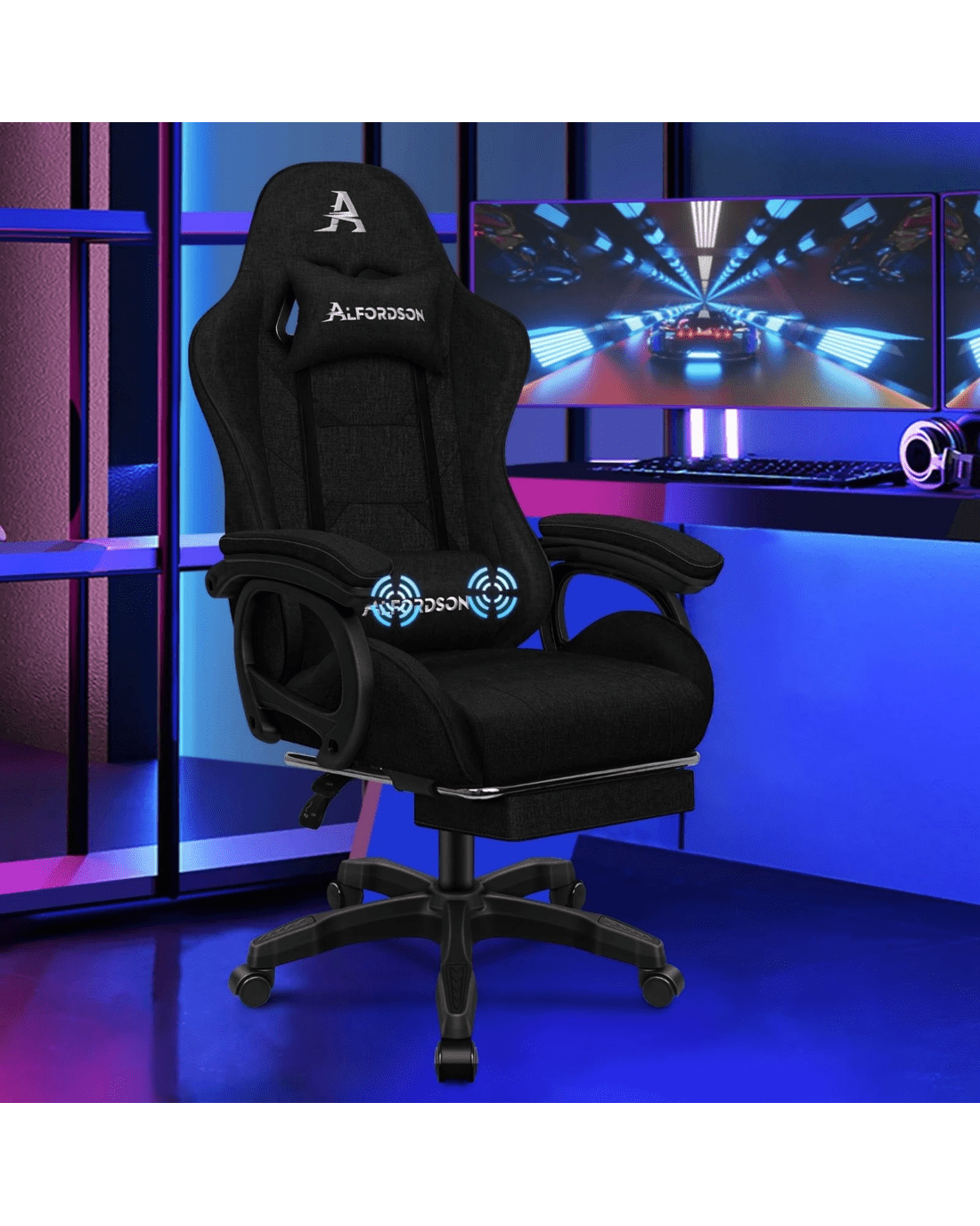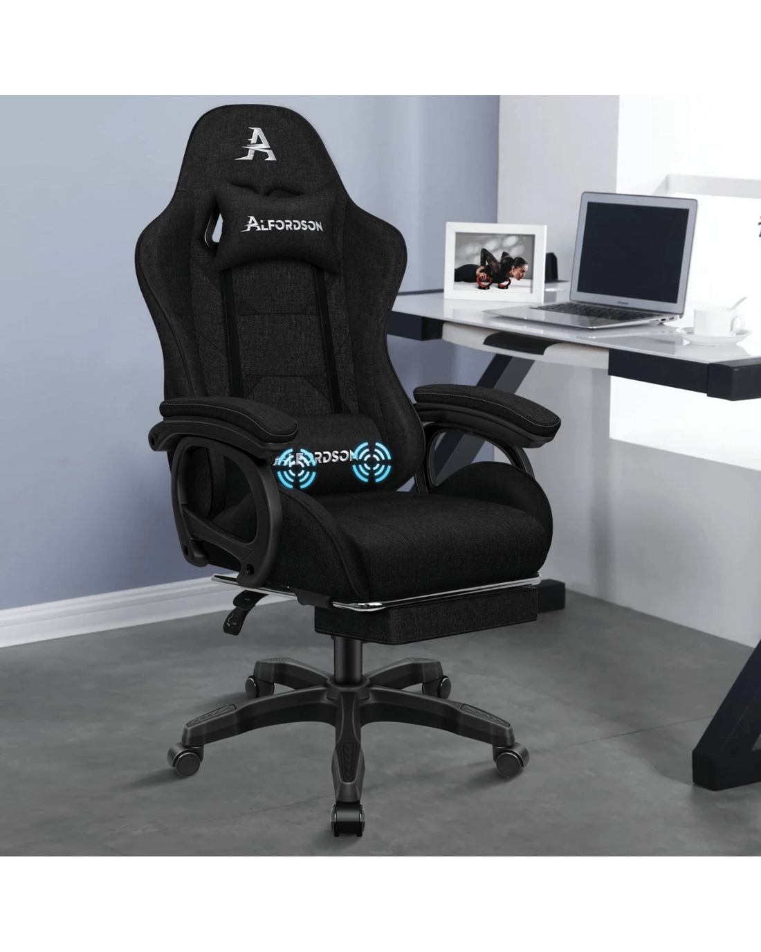 Sold by Aussie Union GroupAlfordson Gaming Chair Office Massage Computer Racing Fabric Seat Footrest - Black