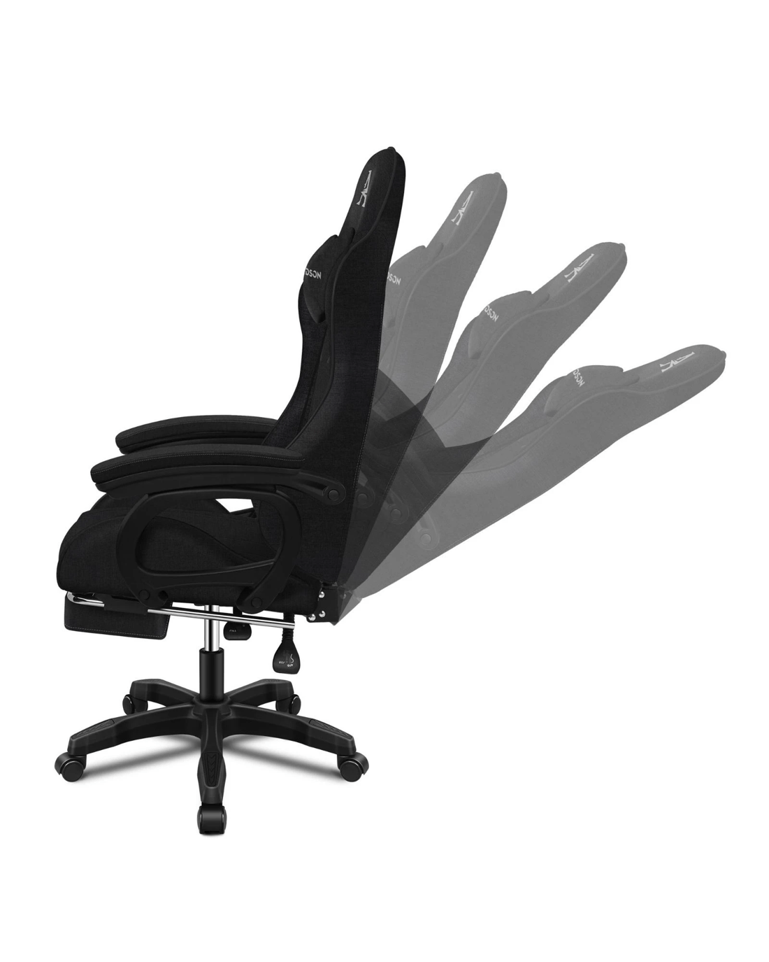 Crafted with deluxe linen fabric, generous foam paddings and ergonomically-friendly design with detachable and height-adjustable lumbar and neck cushions, our racer chair provides your entire body with ample support in all the right places. The 2-point lumbar massage function allows you to work or play at your peak for long periods of time in optimal comfort. With an X pattern in the middle, the Xavier chair perfectly combines both comfort and style.
