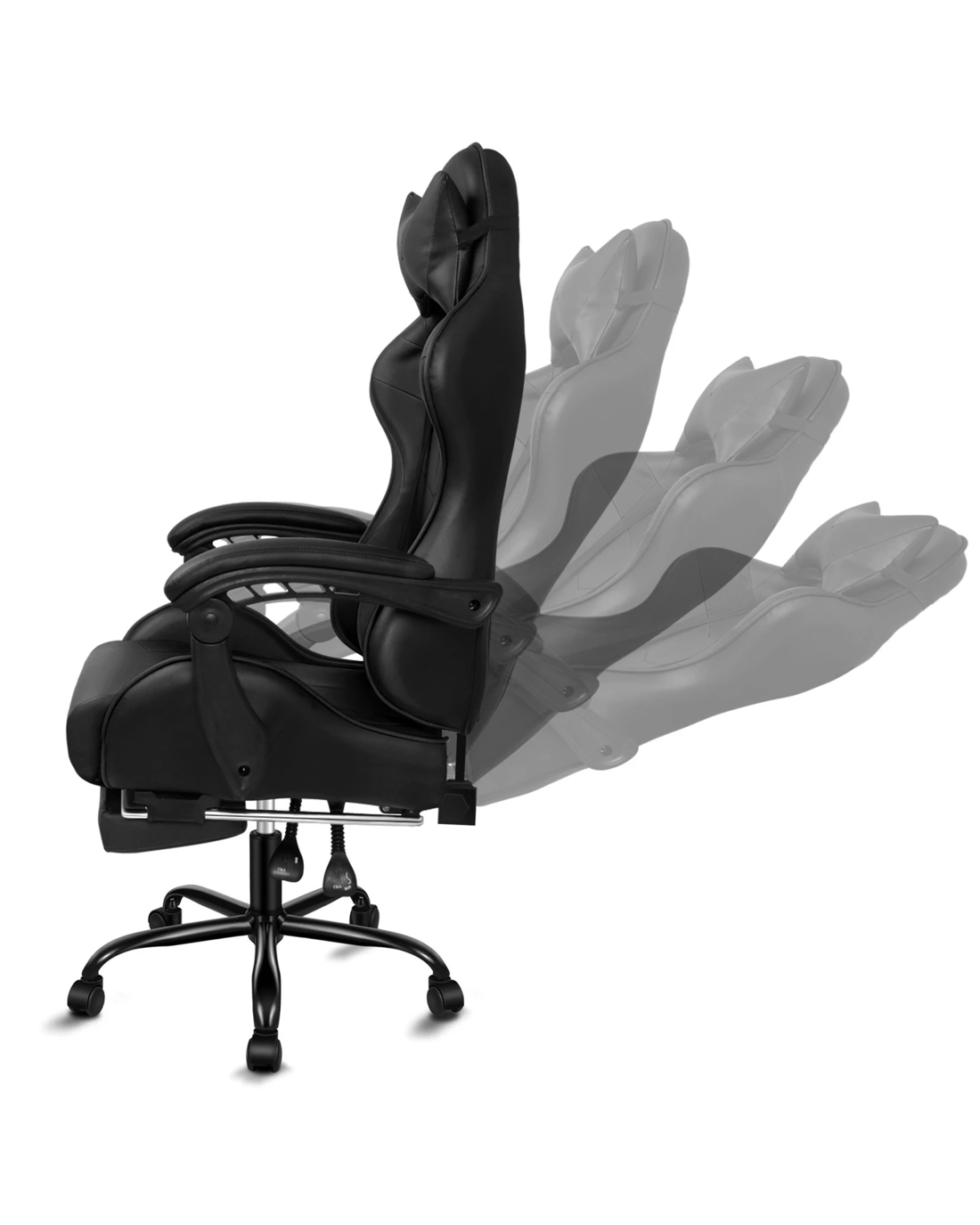 Personalized sitting position adjustment - Whether you're sitting straight or leaning back, our generous 150 degree of recline accommodates effortlessly to your favorite posture. You can lock the position of reclination as you wish. Combined with retractable padded footrest, the racing chair suits your personalized positions while sitting, sleeping or playing games.