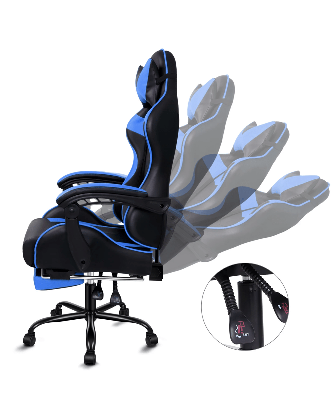 Personalized sitting position adjustment - Whether you're sitting straight or leaning back, our generous 150 degree of recline accommodates effortlessly to your favorite posture. You can lock the position of reclination as you wish. Combined with retractable padded footrest, the racing chair suits your personalized positions while sitting, sleeping or playing games.