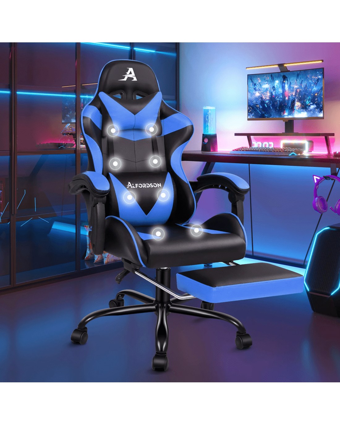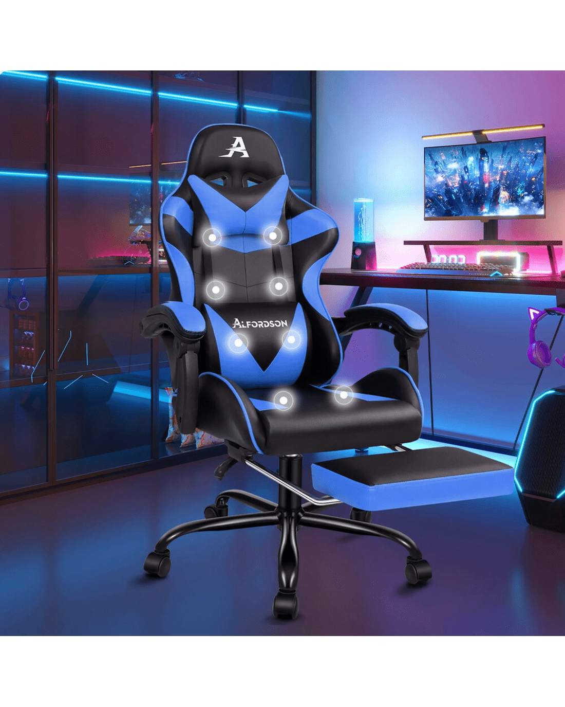Specially designed for serious gamer and smart working executive who loves the adrenaline of residing in a gaming chair, the Alfordson gaming chair in massage collection is the ultimate for movers and shakers like yourself.