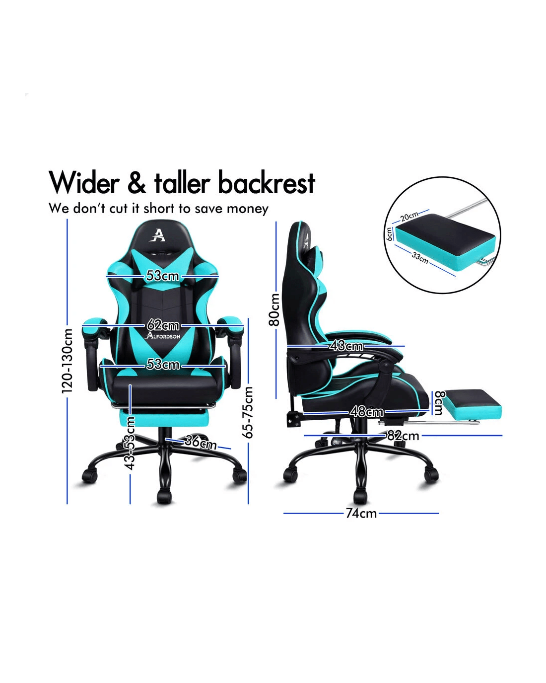 Sold by Aussie Union GroupAlfordson Gaming Chair Office Massage Computer Racing Seat PU Leather - Cyan