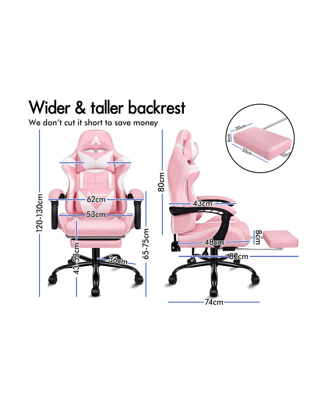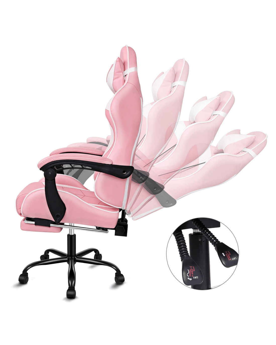 Personalized sitting position adjustment - Whether you're sitting straight or leaning back, our generous 150 degree of recline accommodates effortlessly to your favorite posture. You can lock the position of reclination as you wish. Combined with retractable padded footrest, the racing chair suits your personalized positions while sitting, sleeping or playing games.