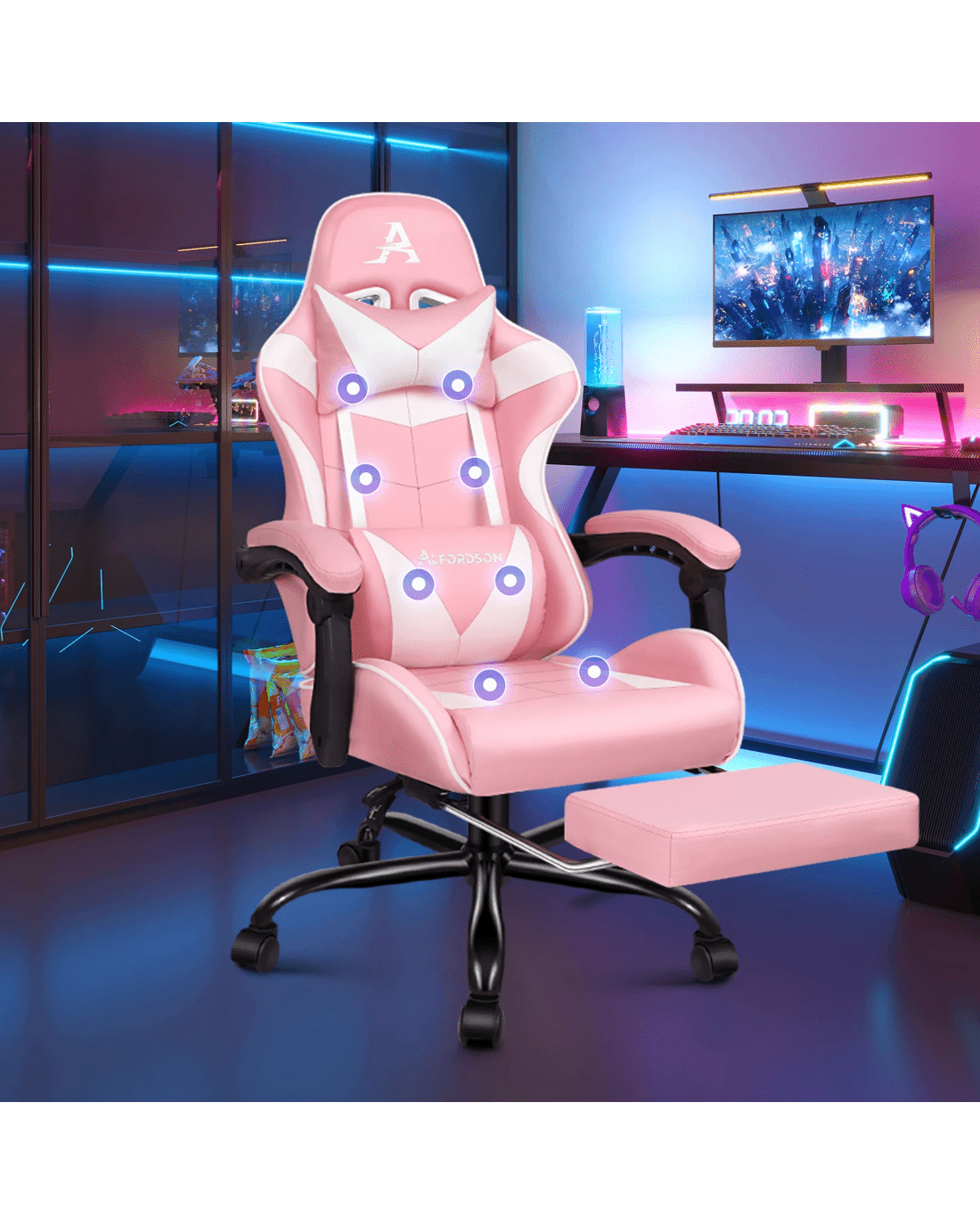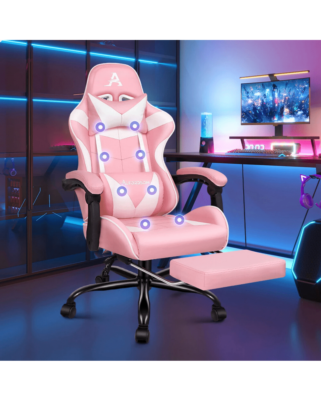 Specially designed for serious gamer and smart working executive who loves the adrenaline of residing in a gaming chair, the Alfordson gaming chair in massage collection is the ultimate for movers and shakers like yourself.