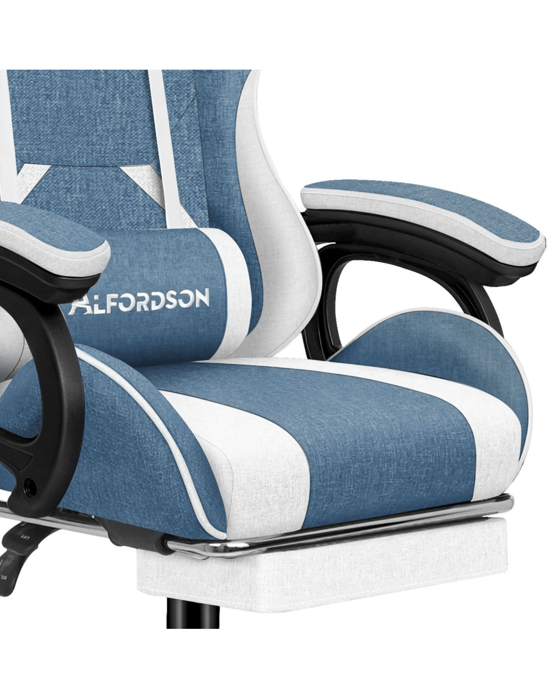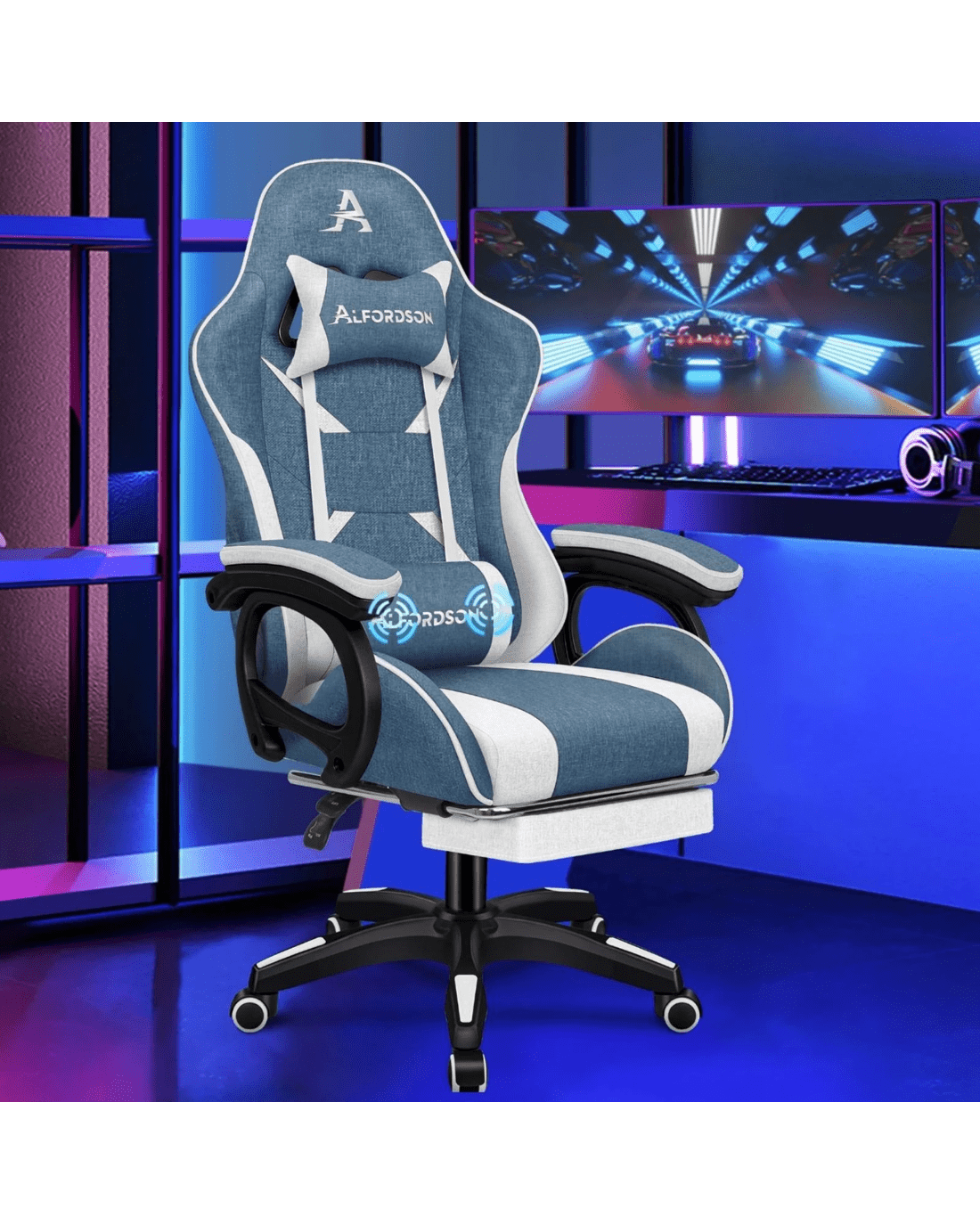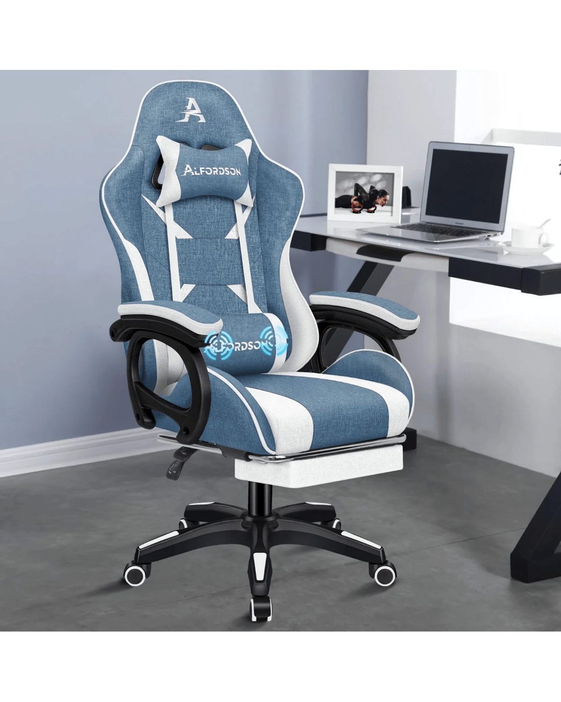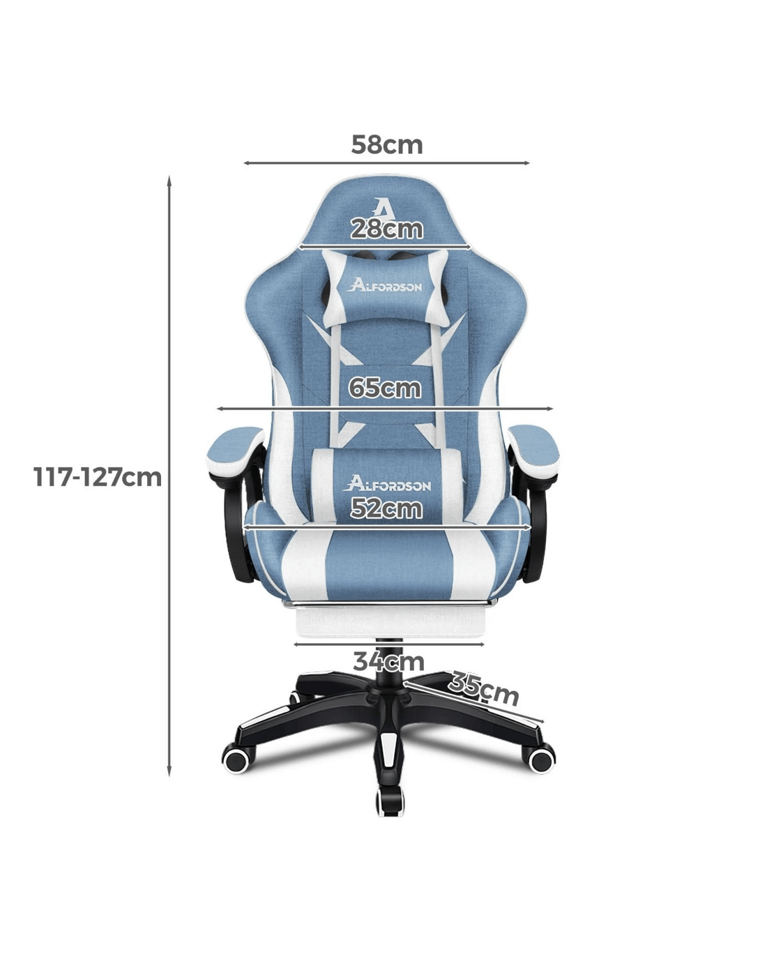 Sold by Aussie Union GroupAlfordson Gaming Chair Office Massage Racing Computer Seat Fabric Footrest - White