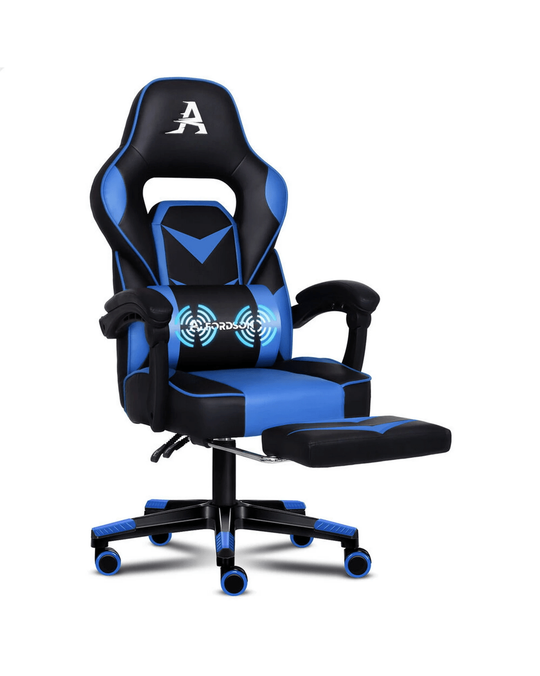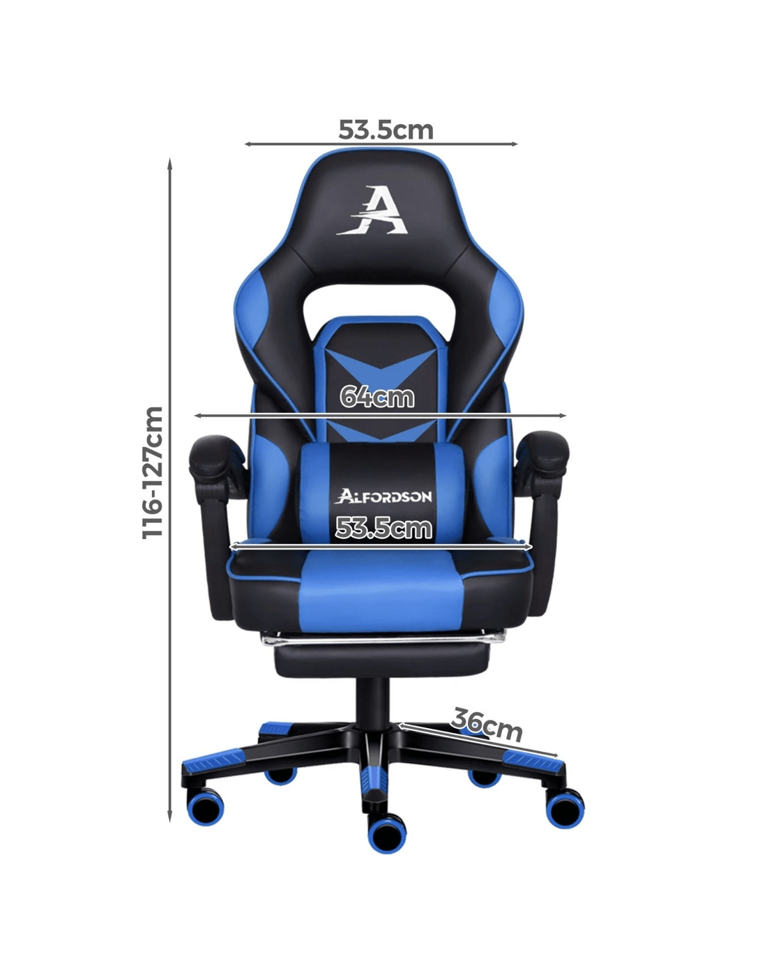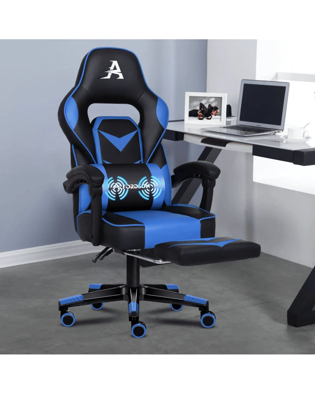 Sold by Aussie Union GroupAlfordson Gaming Chair Office Massage Seat Racing Footrest Executive - Blue