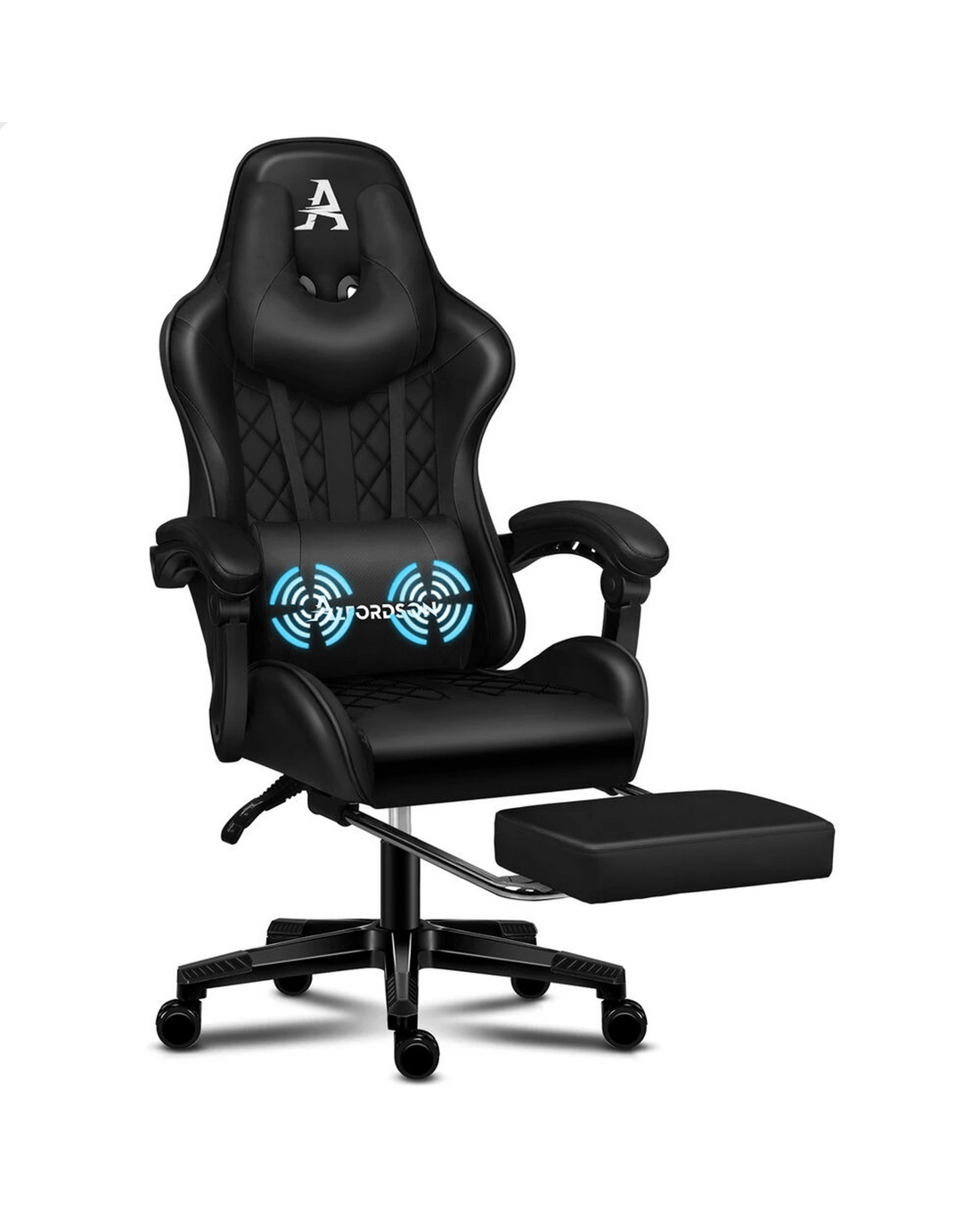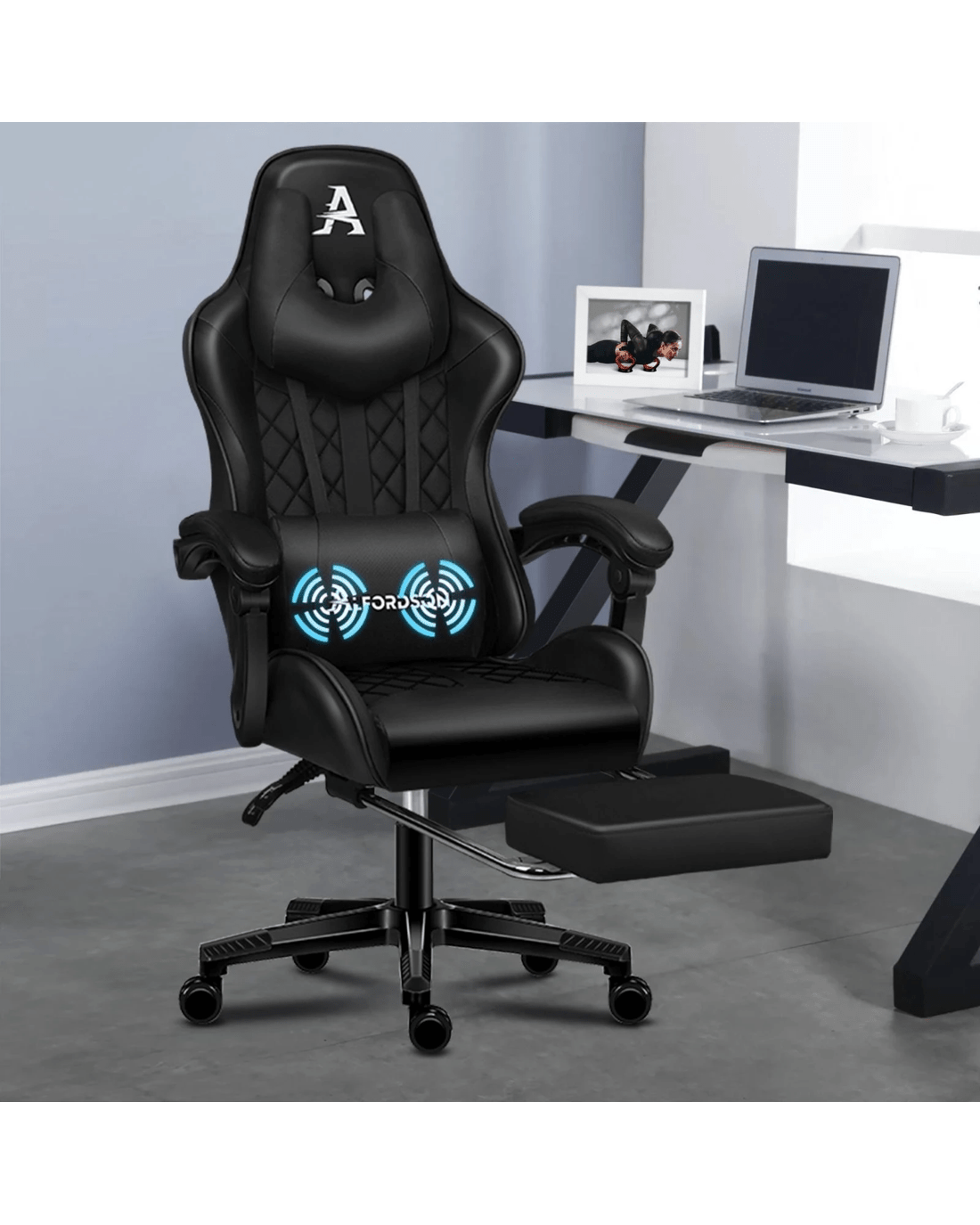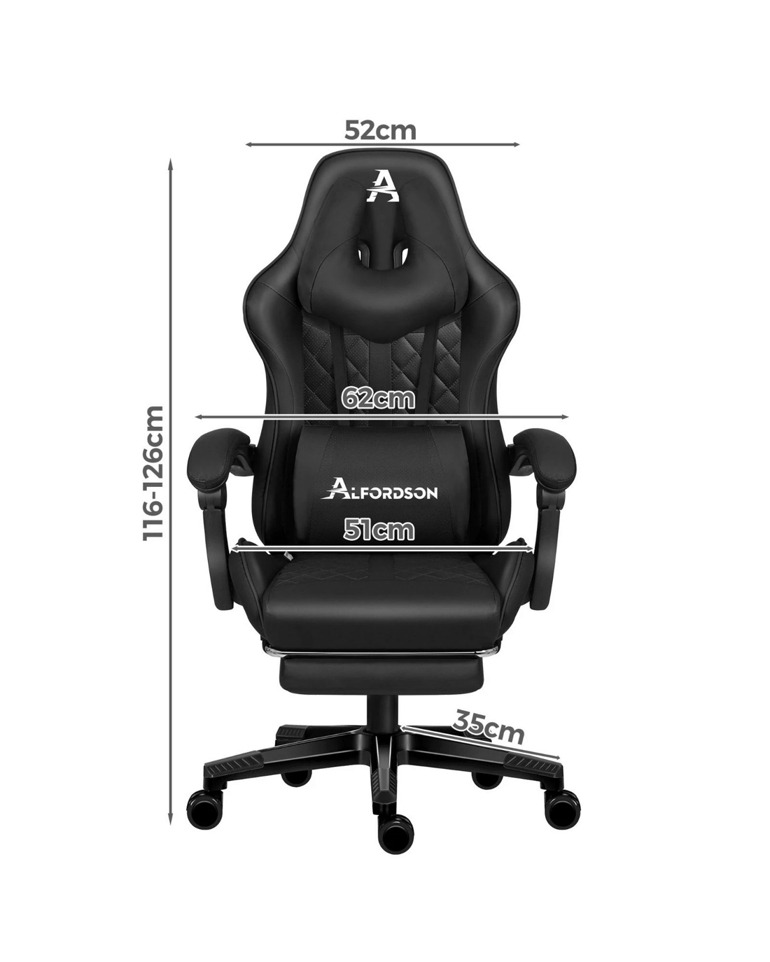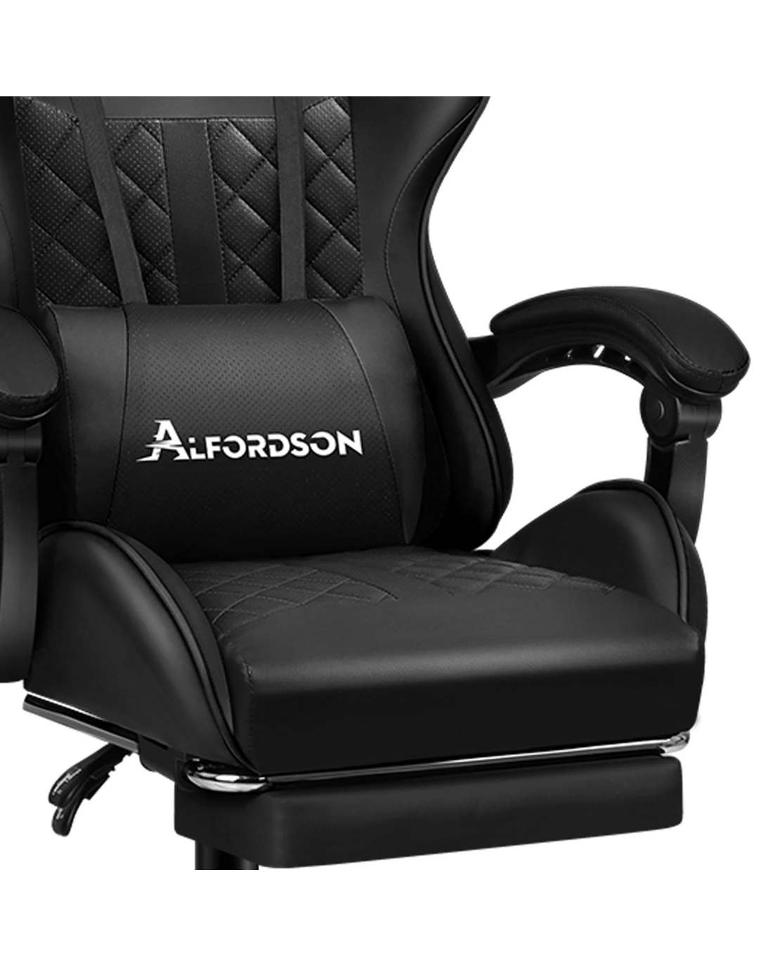 Alfordson Gaming Chair Office Racer Large Lumbar Cushion Footrest Seat Leather - Black