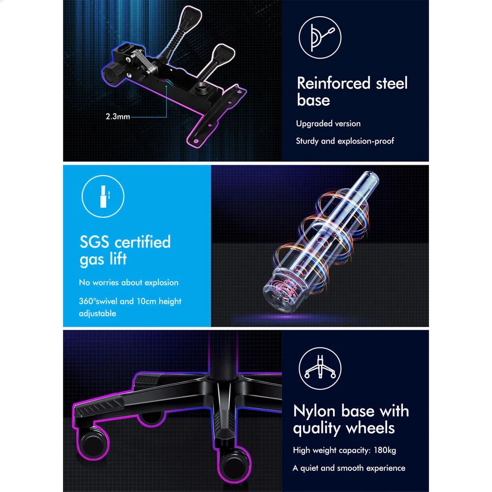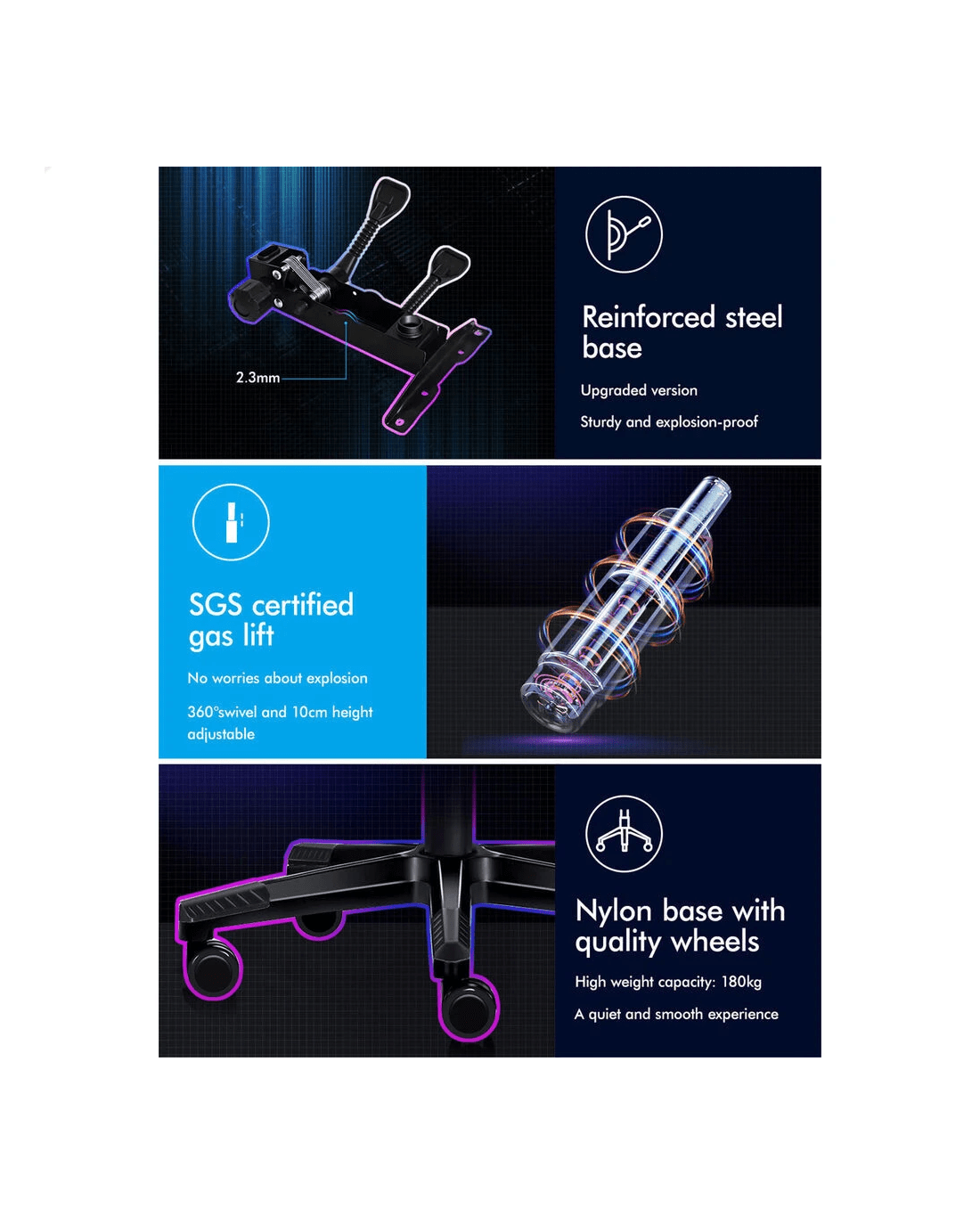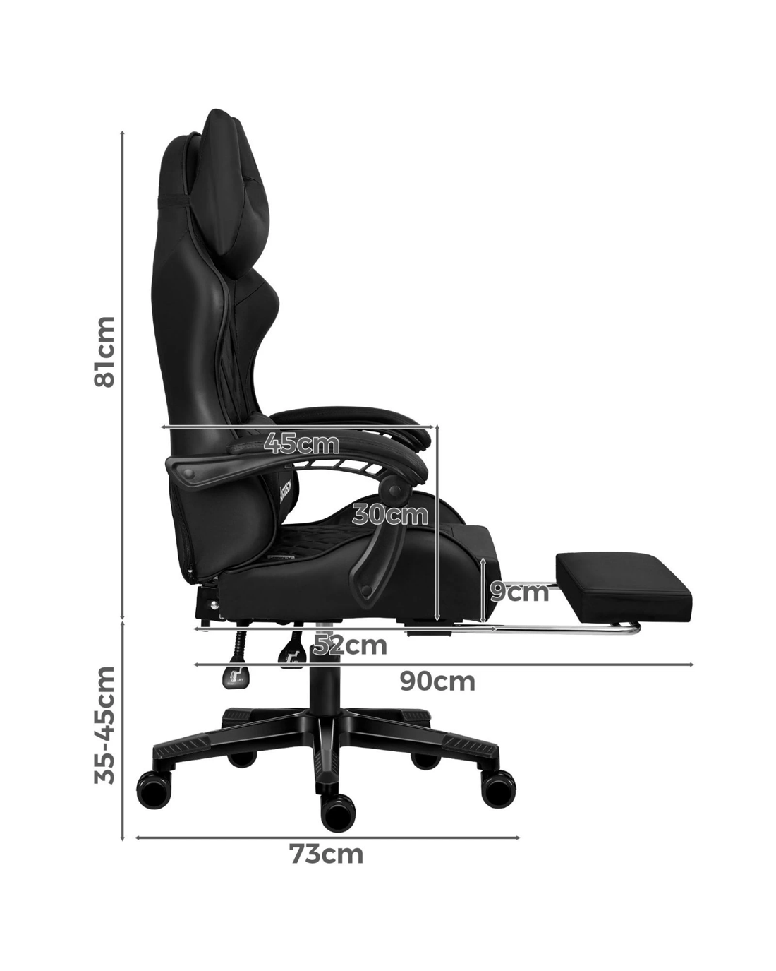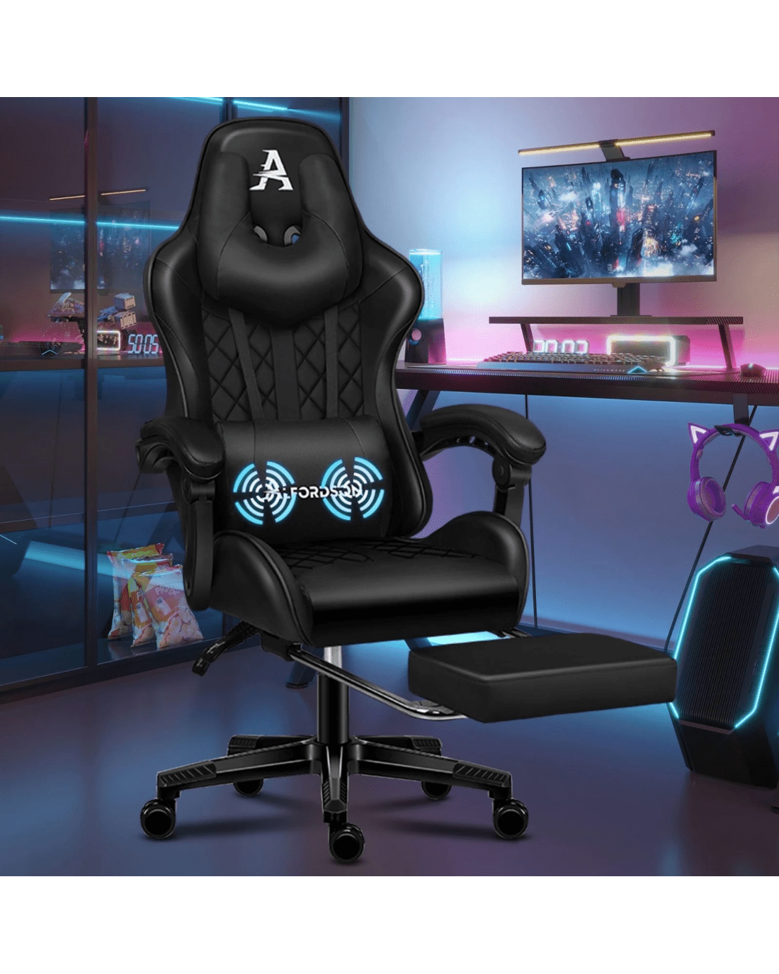 Alfordson Gaming Chair Office Racer Large Lumbar Cushion Footrest Seat Leather - Black