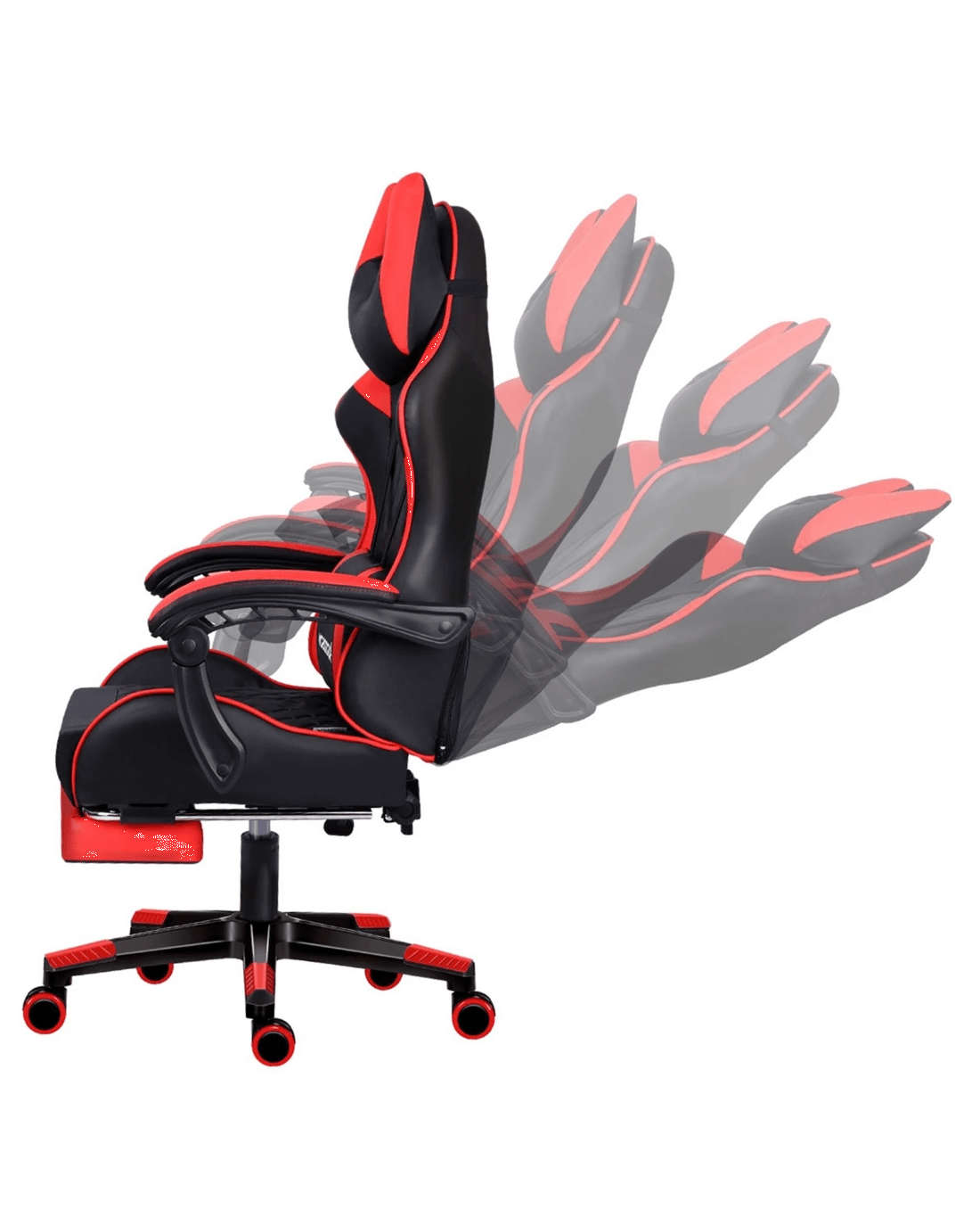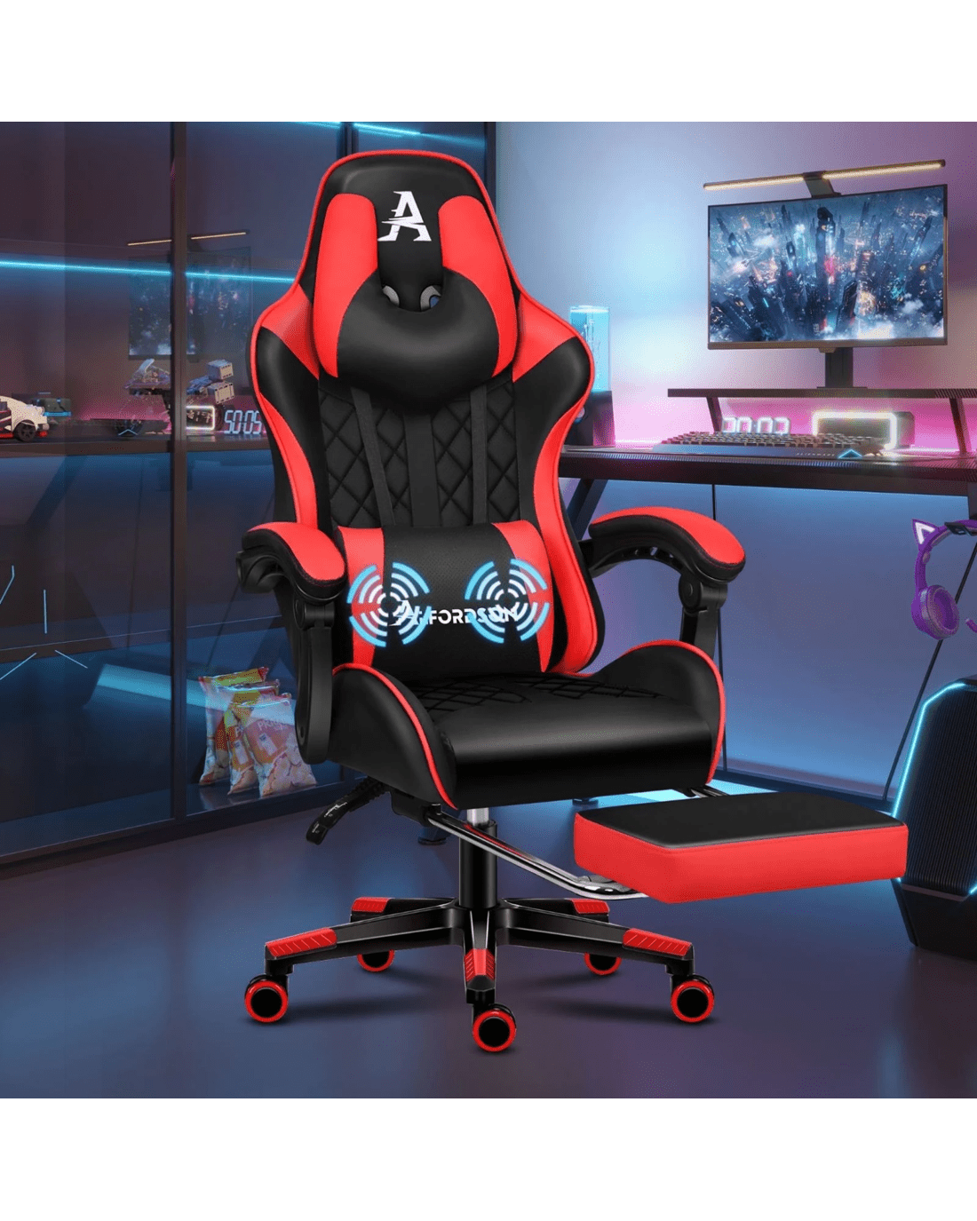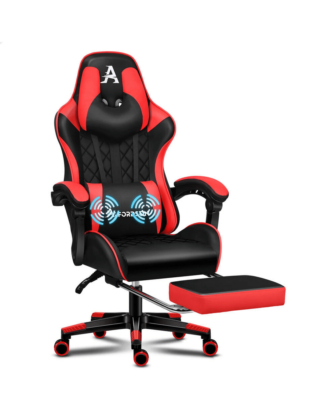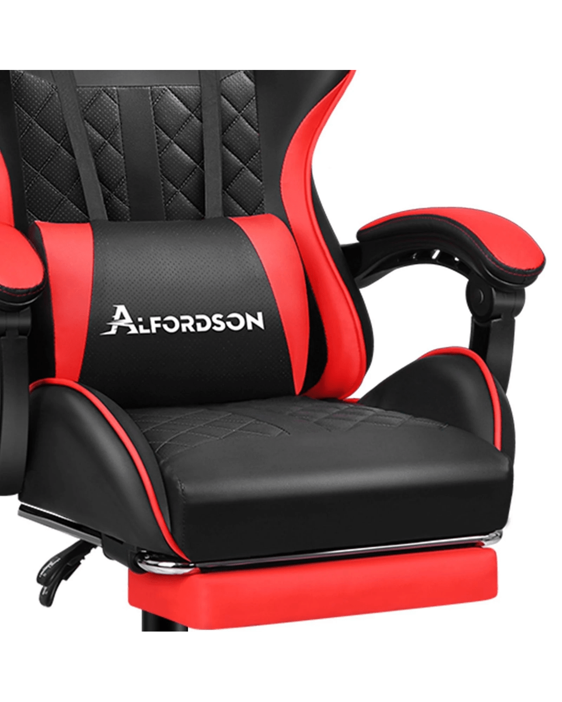 Alfordson Gaming Chair Office Racer Large Lumbar Cushion Footrest Seat Leather - Red