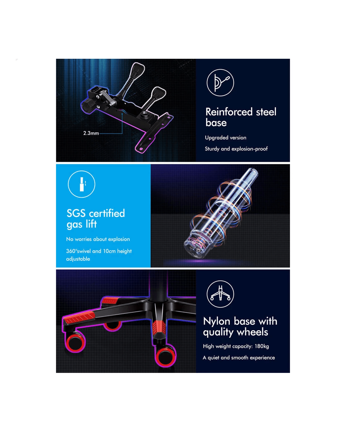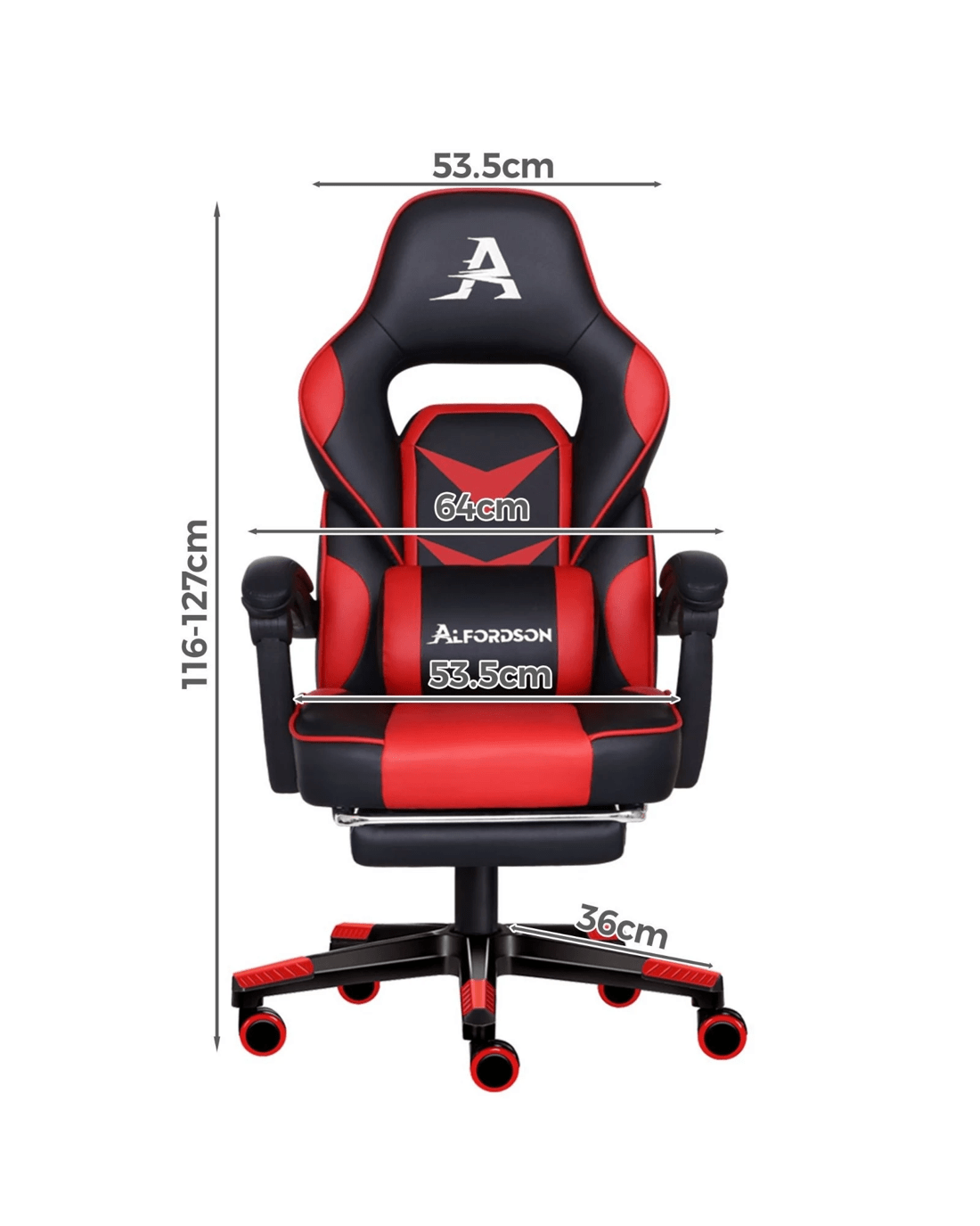 The premium ALFORDSON gaming chair is tailored for those who are passionate about both intense gaming sessions and focused work hours. Whether you're a dedicated gamer seeking the ultimate setup or a hard-working professional craving comfort, this ergonomic chair is your perfect companion.
