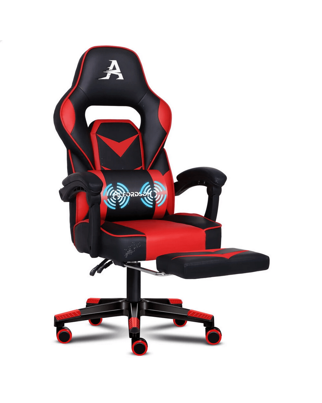 Sold by Aussie Union GroupAlfordson Gaming Chair Office Seat Racing Lumbar Massage Footrest Executive - Red