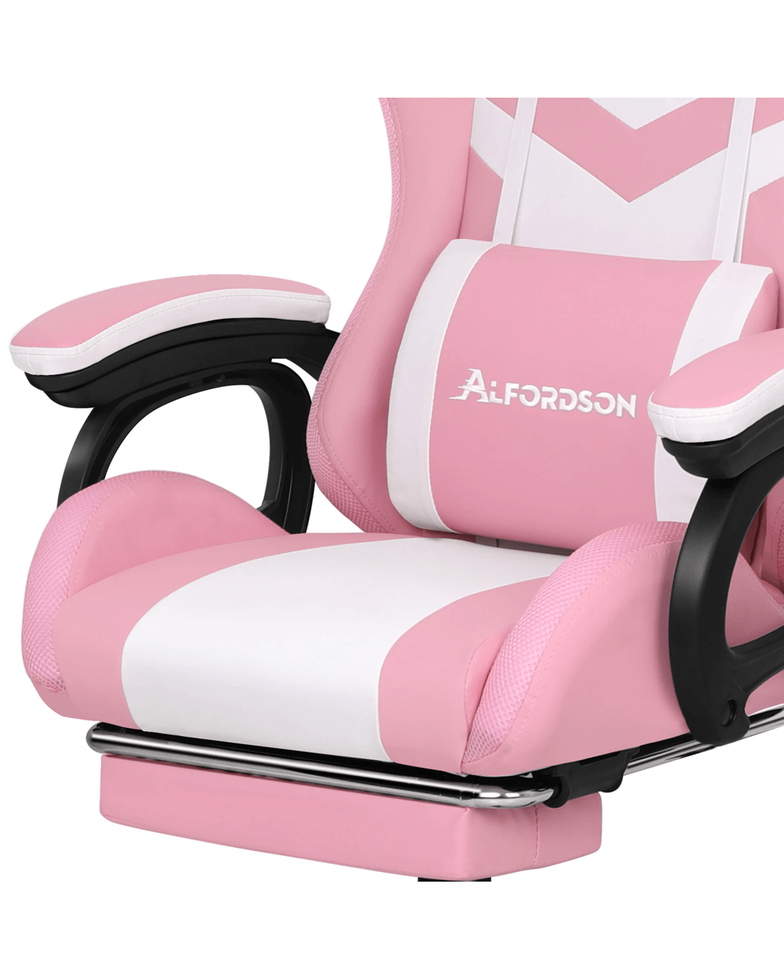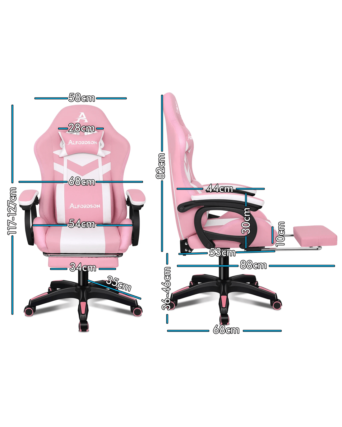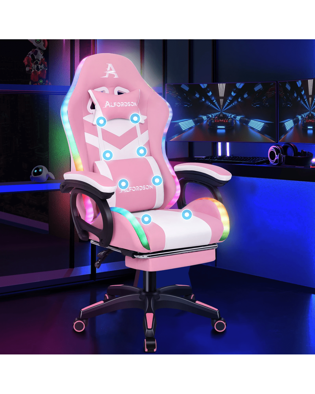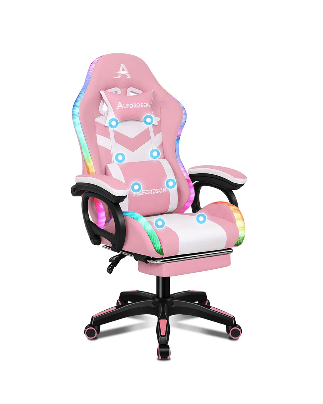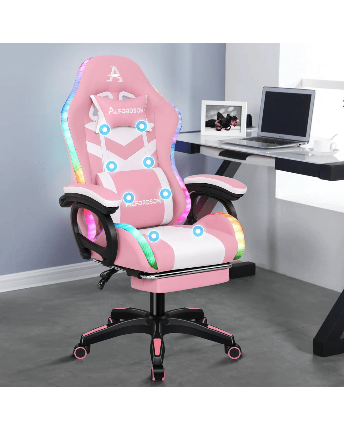 Sold by Aussie Union GroupAlfordson Gaming Office Chair 12 RGB LED Massage Computer Seat Footrest - Pink