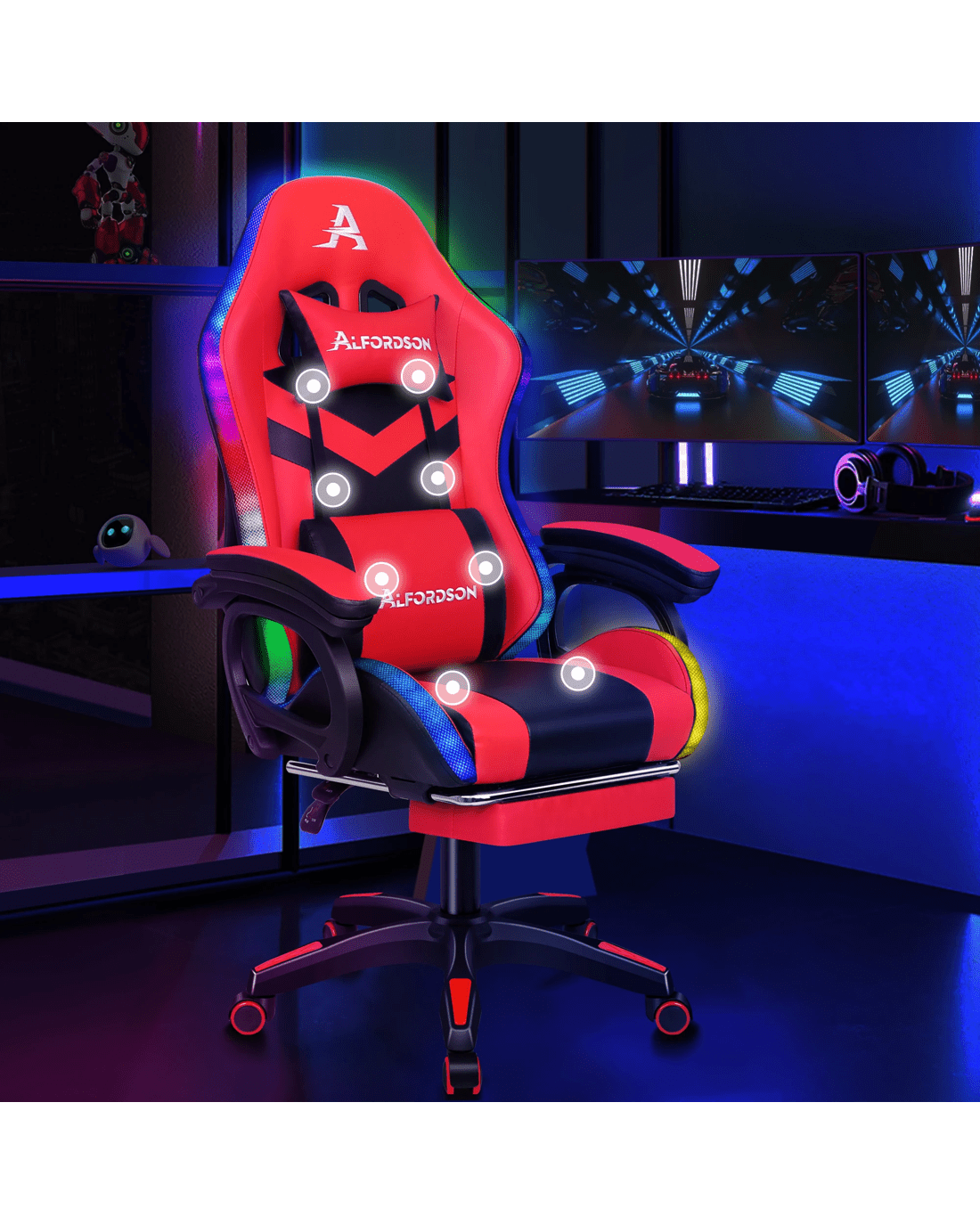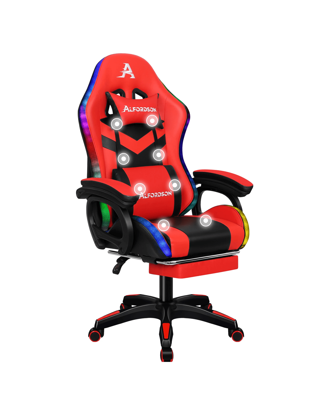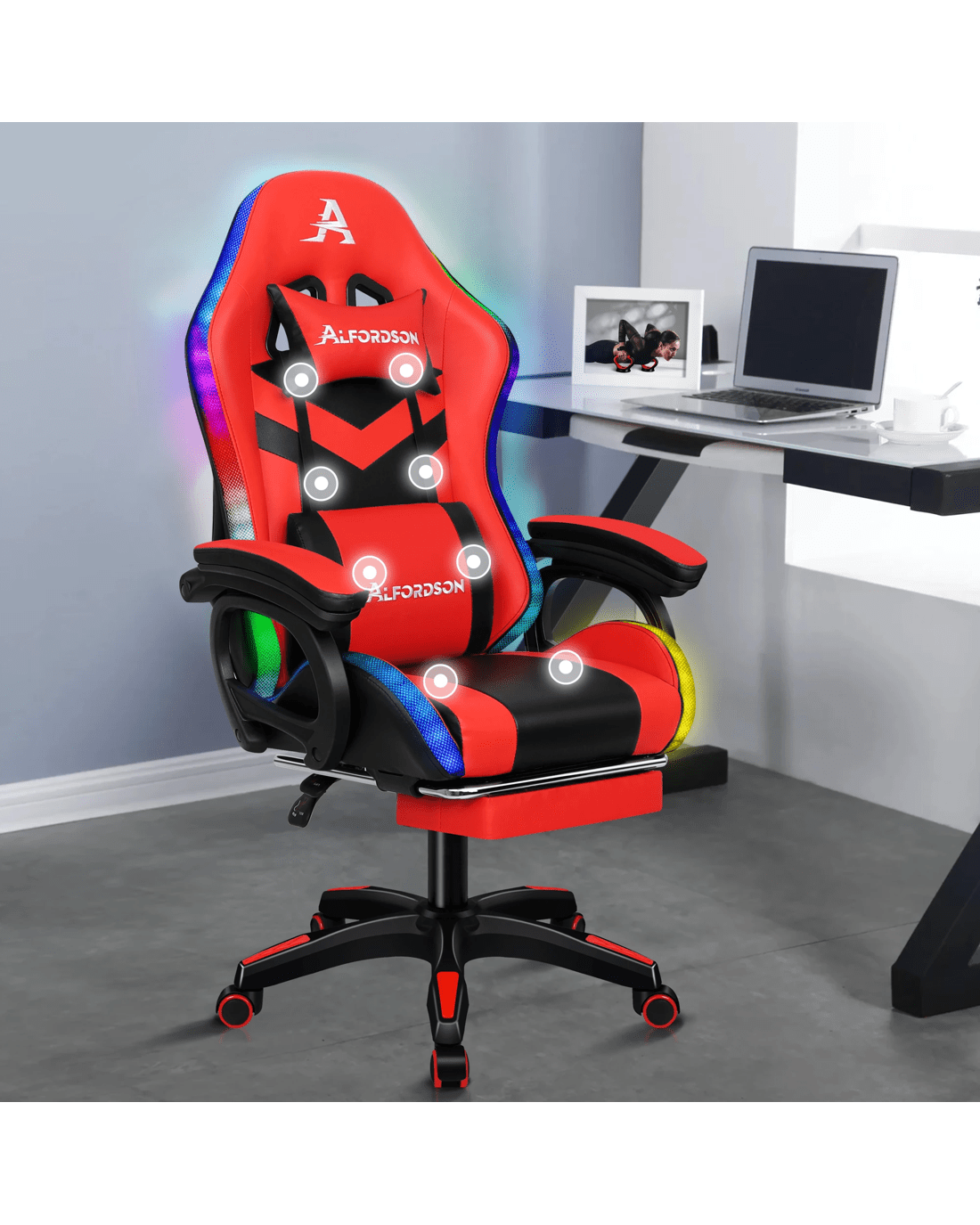 Sold by Aussie Union GroupAlfordson Gaming Office Chair 12 RGB LED Massage Computer Seat Footrest - Red