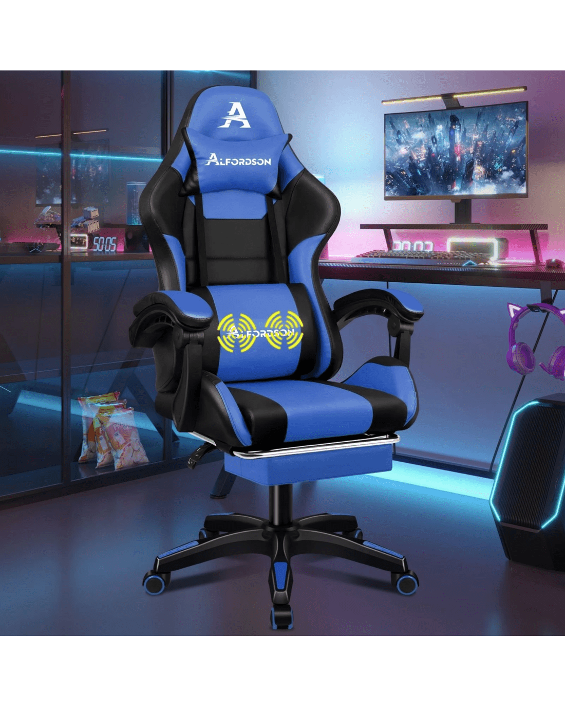 Sold by Aussie Union GroupAlfordson Gaming Office Chair Extra Large Pillow Racing Executive Footrest Seat - Blue