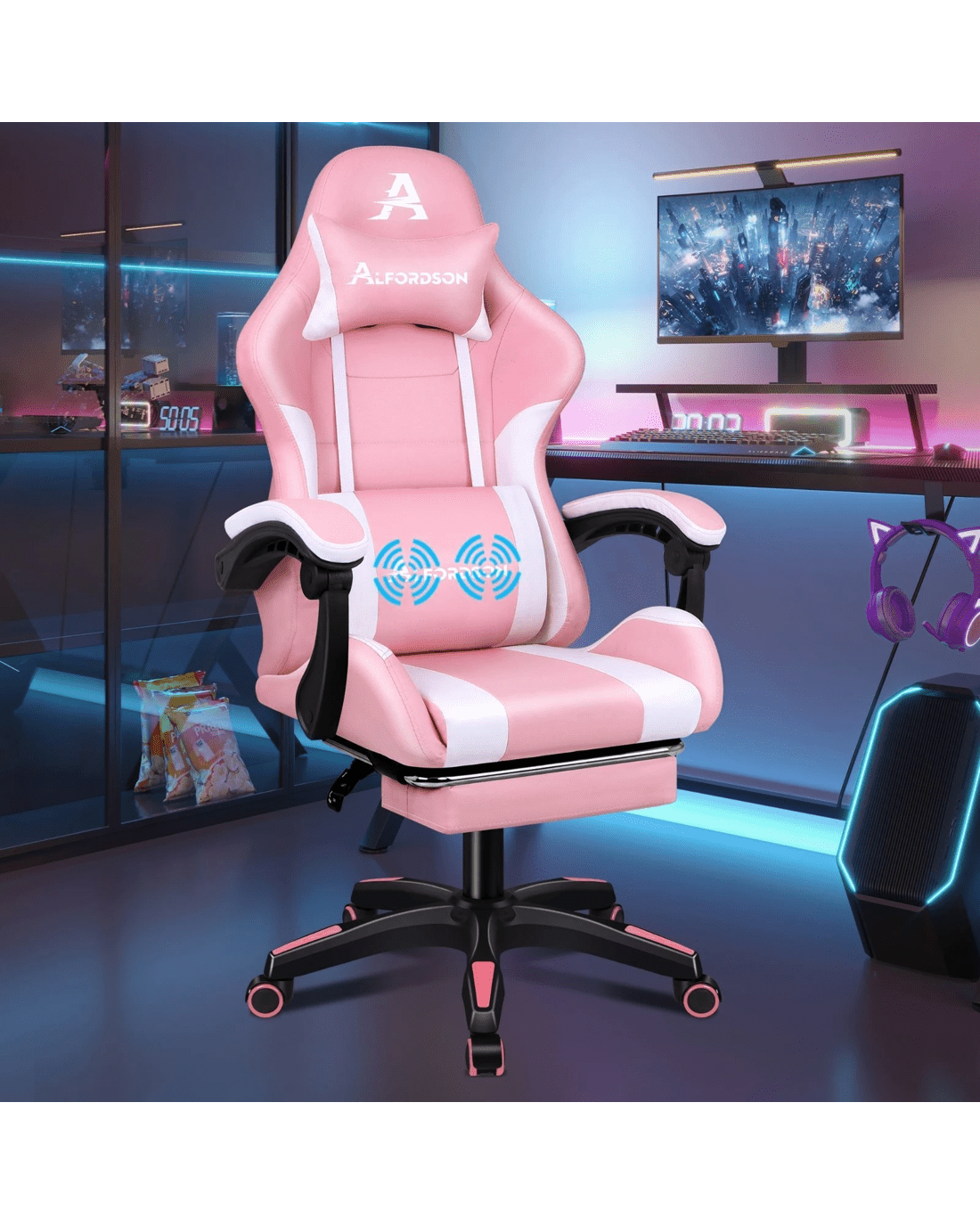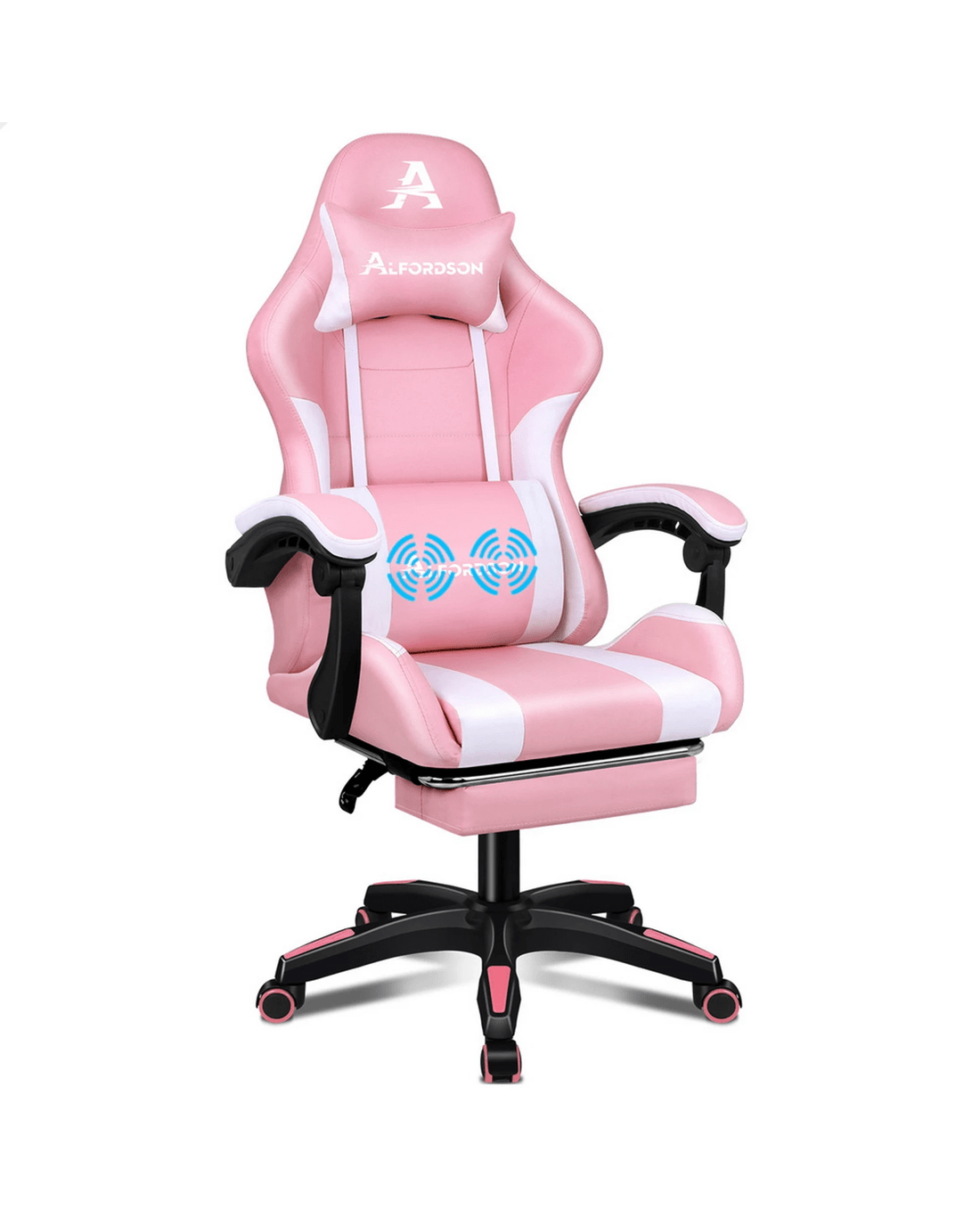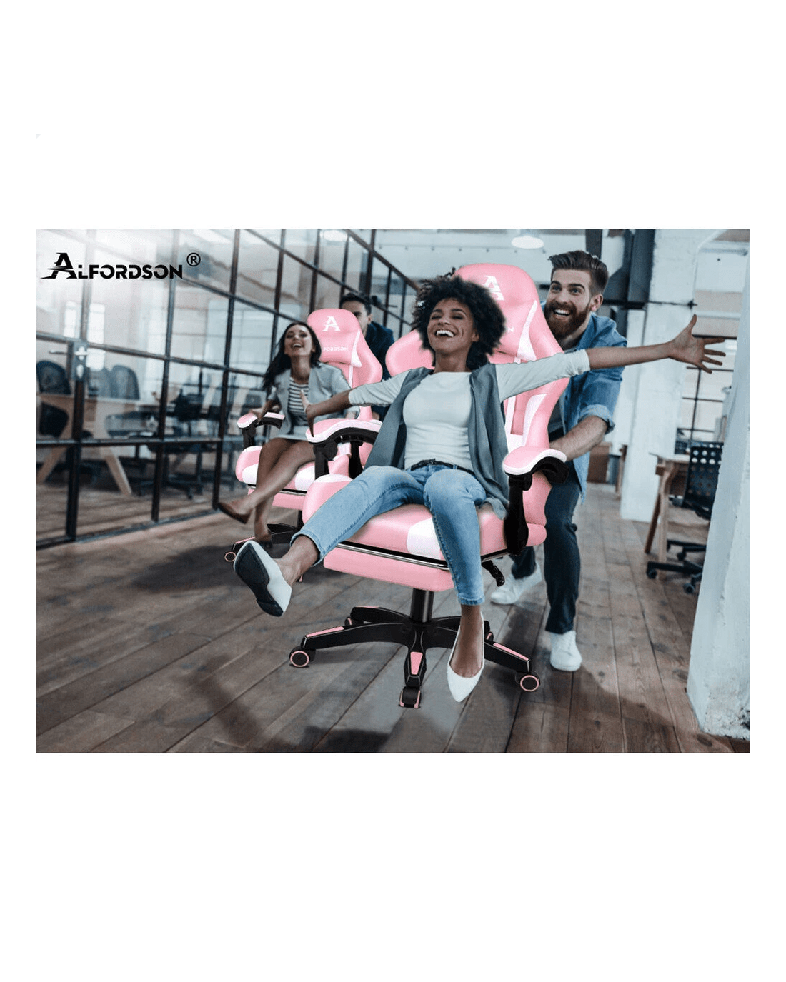 Alfordson Gaming Office Chair Extra Large Pillow Racing Executive Footrest Seat - Pink