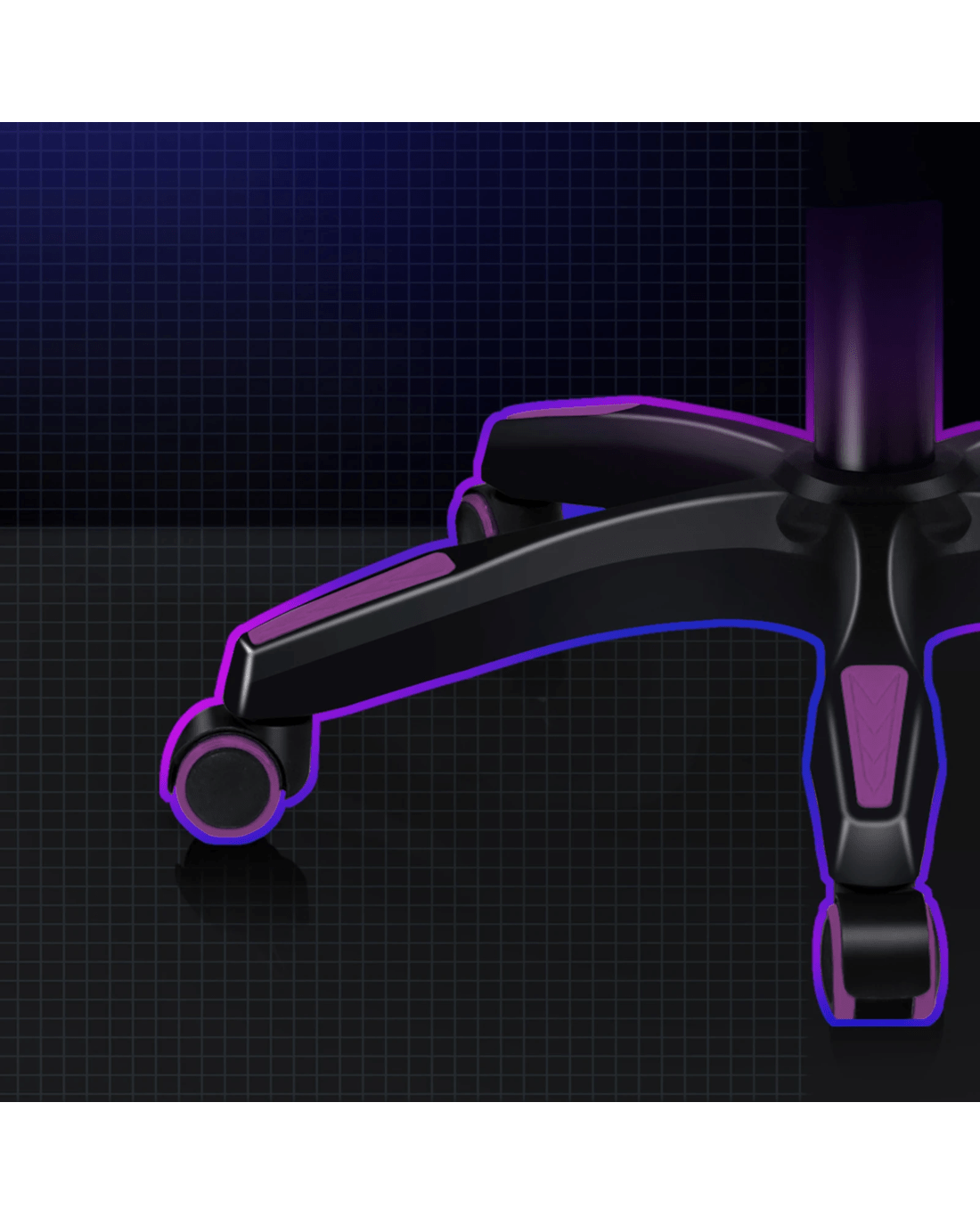 * Heavy duty nylon base with color accents, syncs with your gaming setup