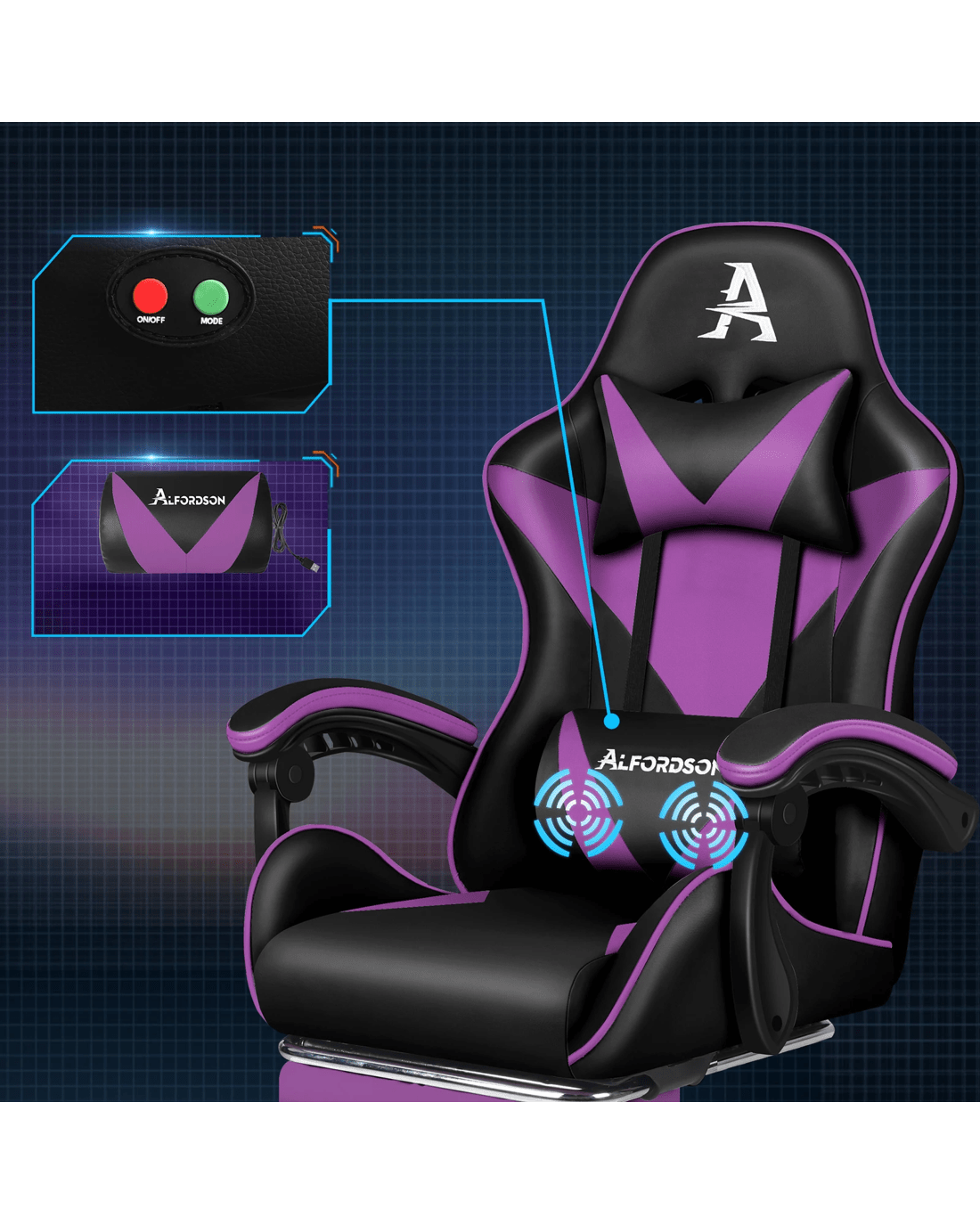 Sold by Aussie Union GroupAlfordson Gaming Office Chair Massage Computer Footrest Leather - Purple