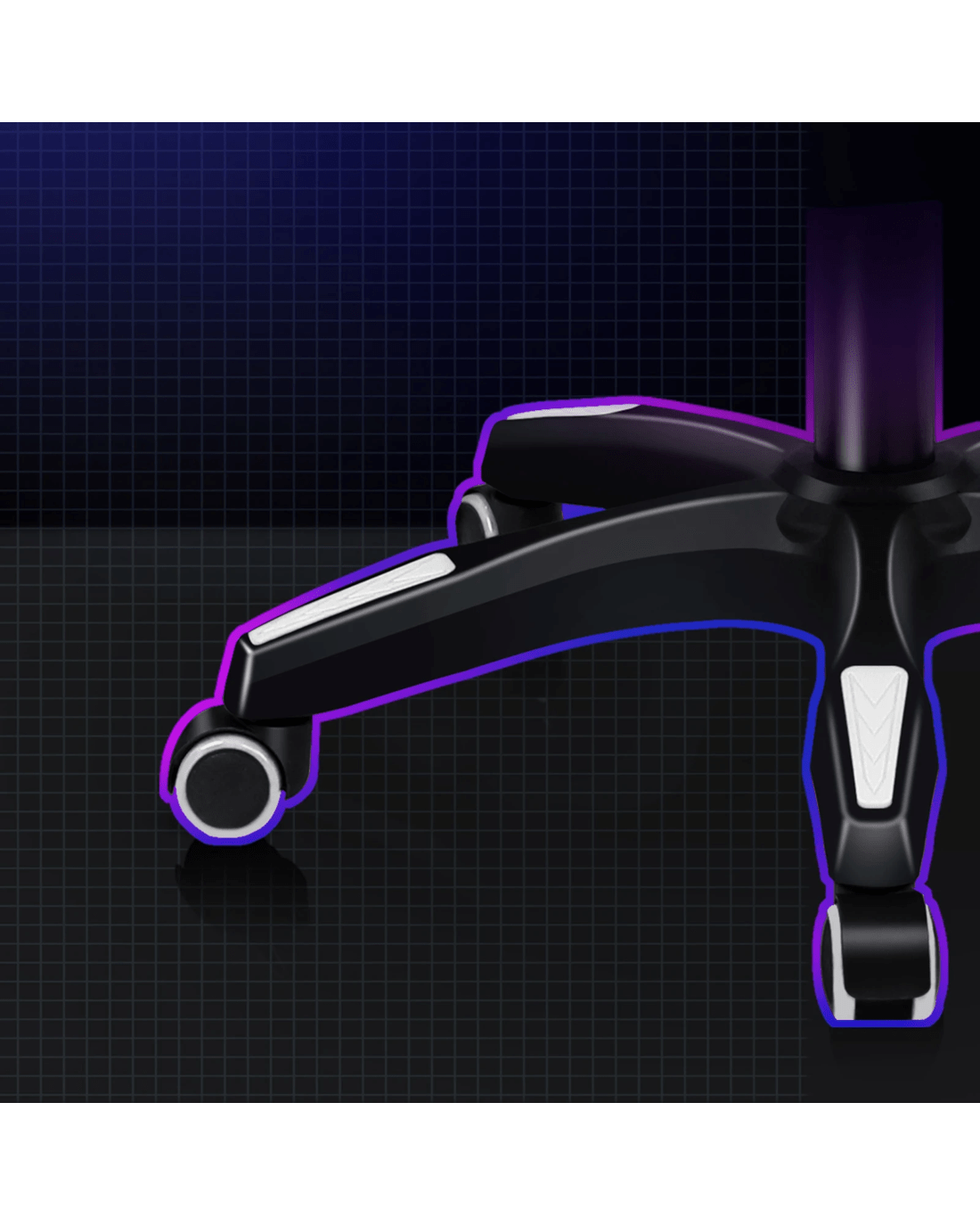 * Heavy duty nylon base with color accents, syncs with your gaming setup