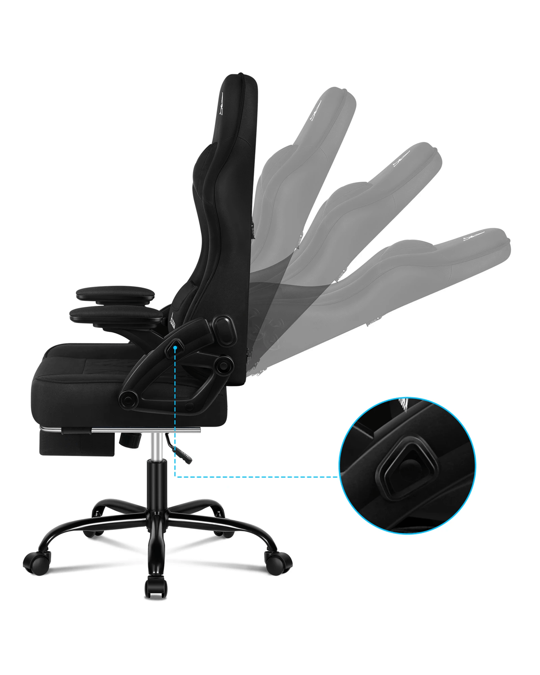 The ergonomic gaming chair is combined with retractable padded footrest that suits your personalized positions while sitting, sleeping, working or playing games. An elite in quality and design, your solution to true comfort.