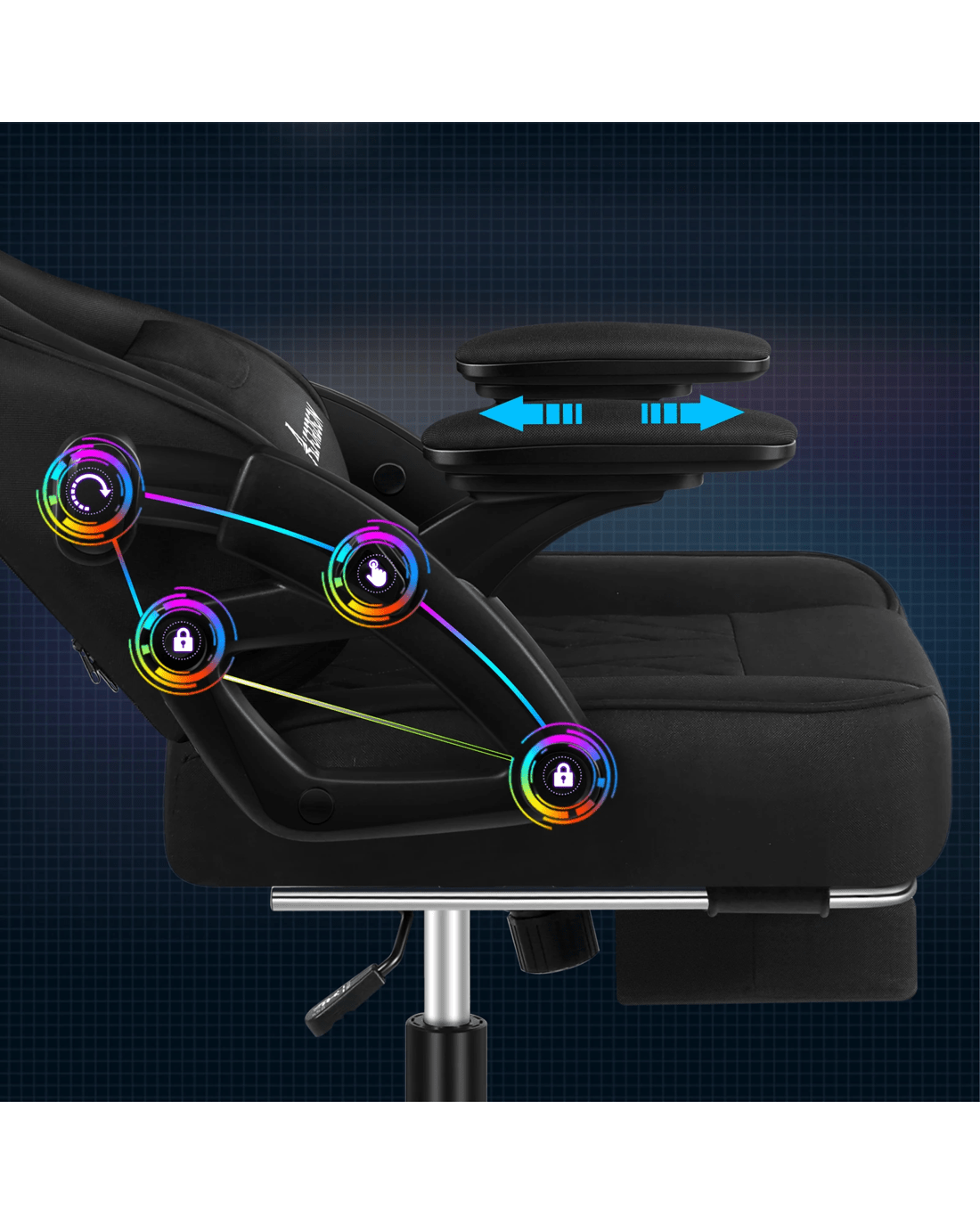 A stylish chrome base with TUV certified casters, Intertek approved linen fabric, SGS approved Gas-Lift system and tilt function, the gaming office chair is sure to deliver absolute five star luxury.