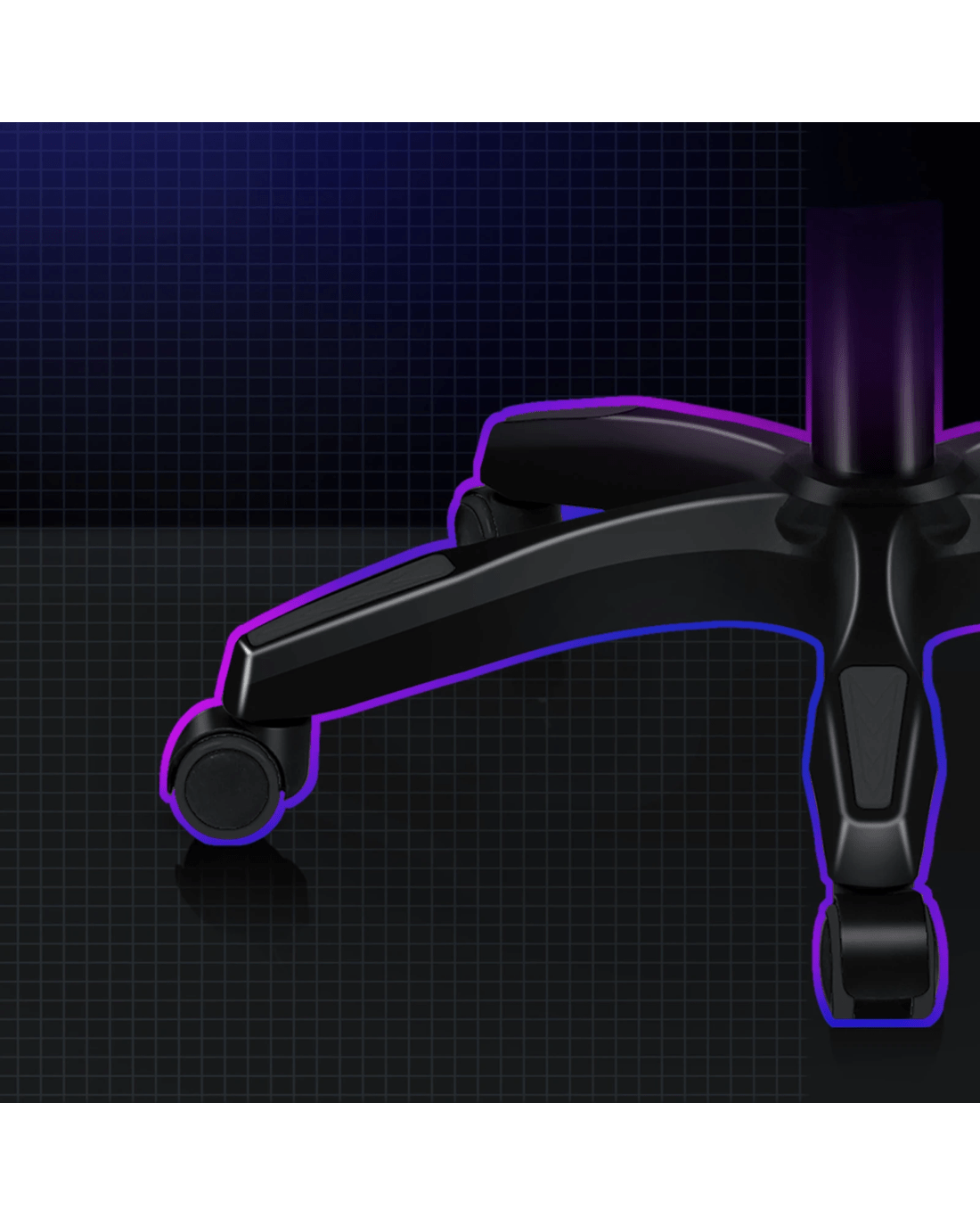 * Heavy duty nylon base with color accents, syncs with your gaming setup