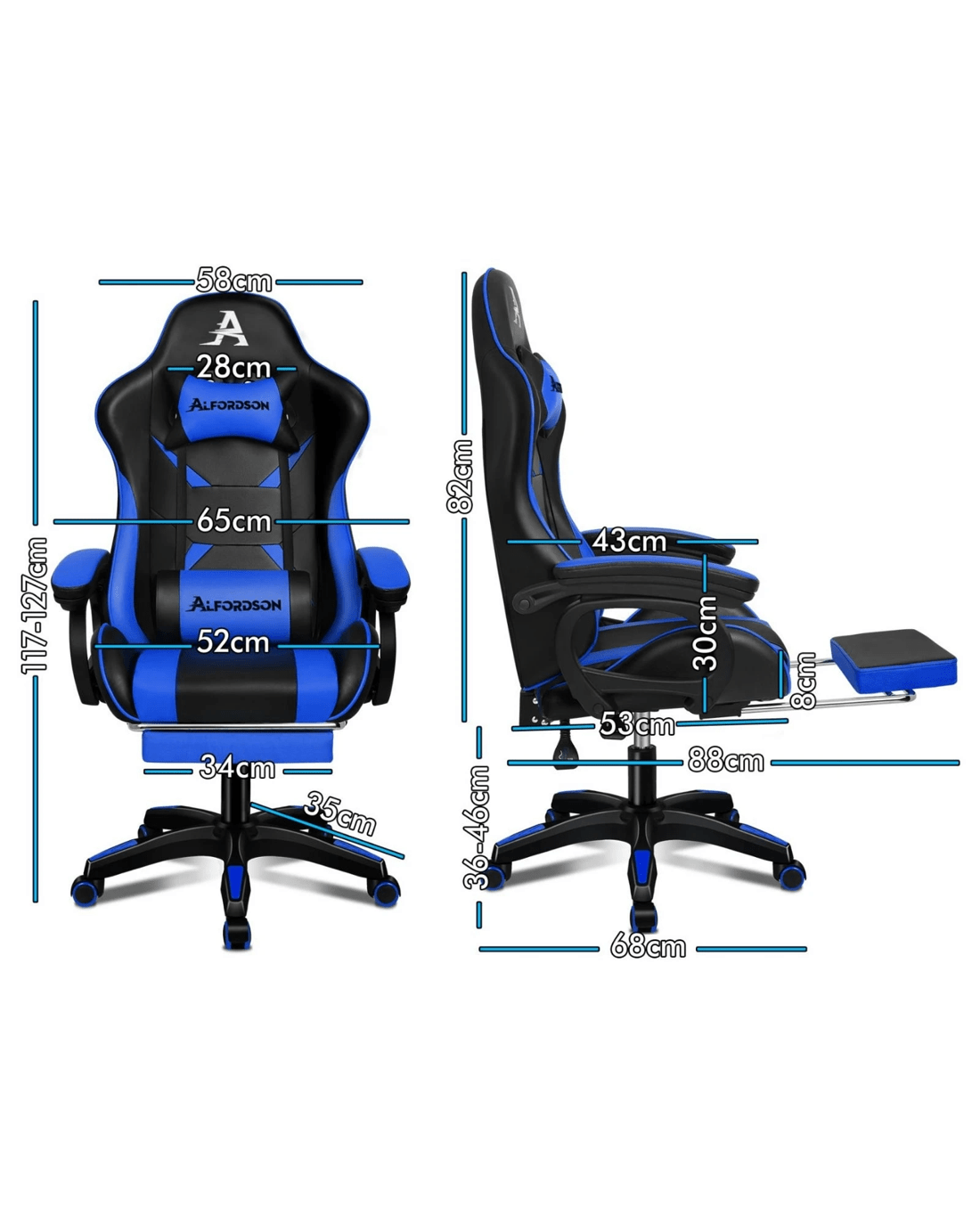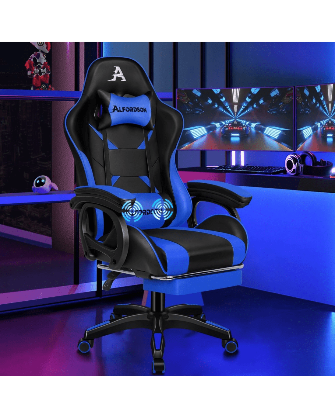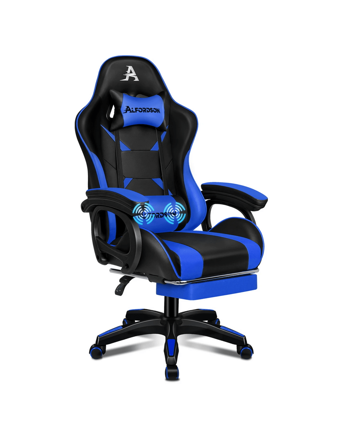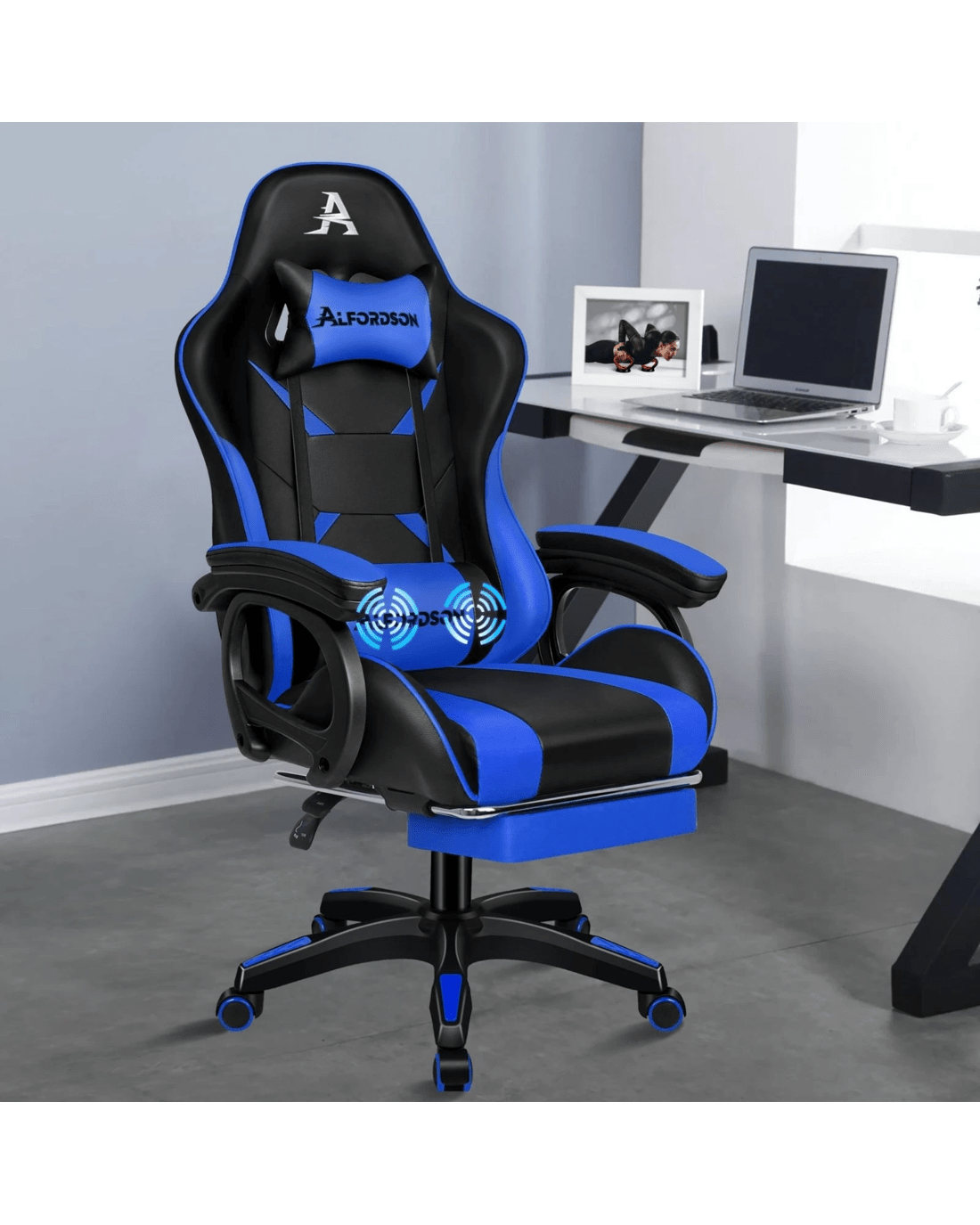 Sold by Aussie Union GroupAlfordson Gaming Office Chair Massage Racing Computer Seat Footrest Leather - Blue