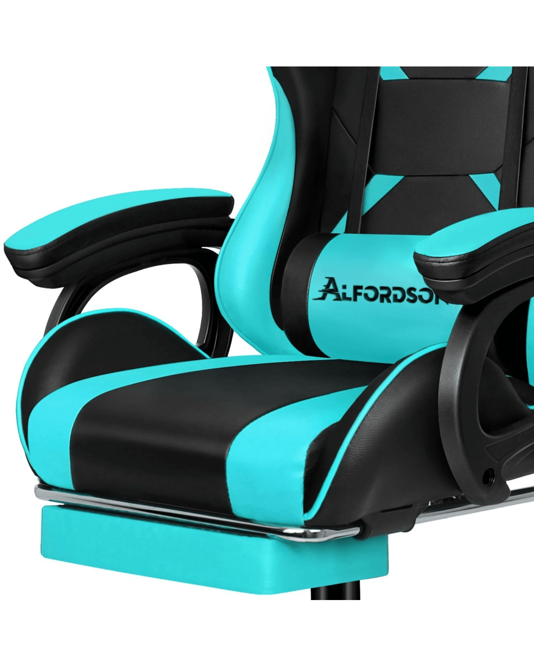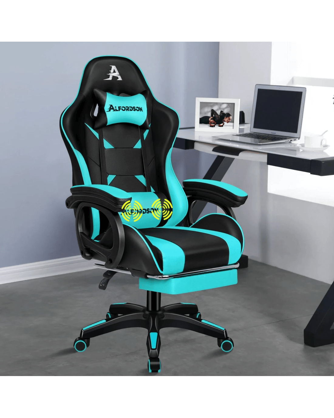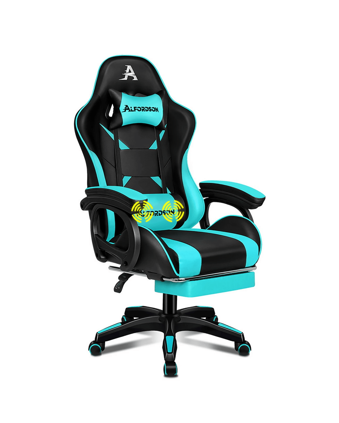Sold by Aussie Union GroupAlfordson Gaming Office Chair Massage Racing Computer Seat Footrest Leather - Cyan