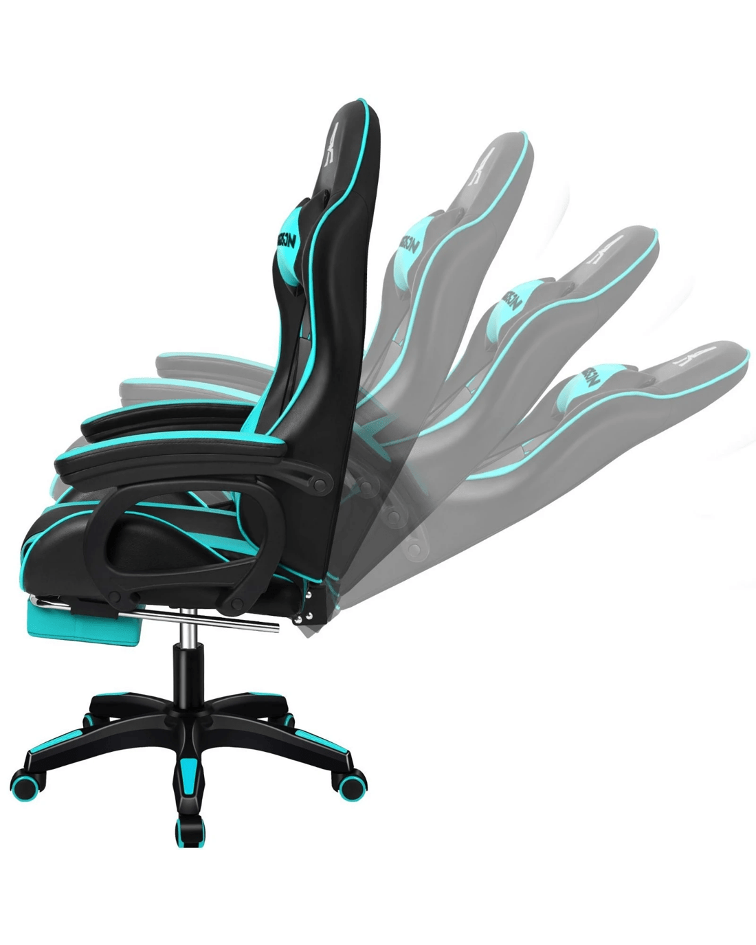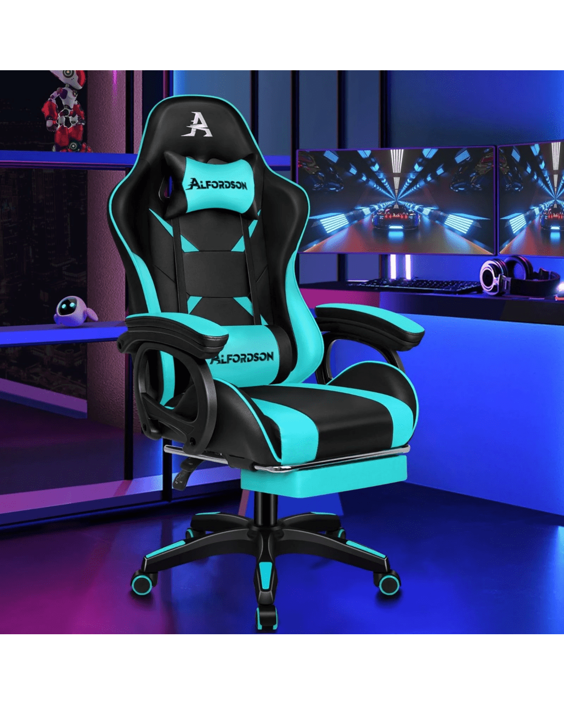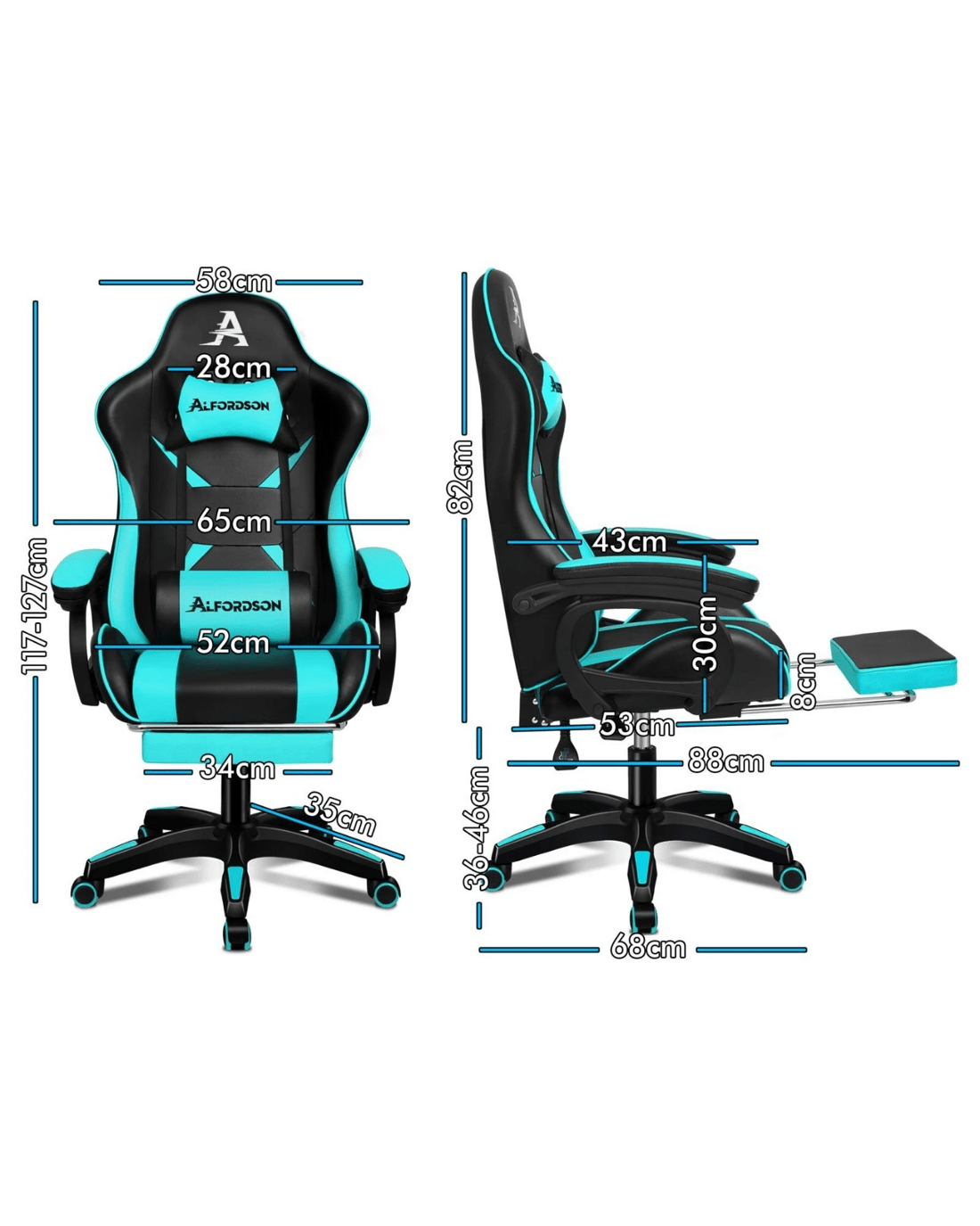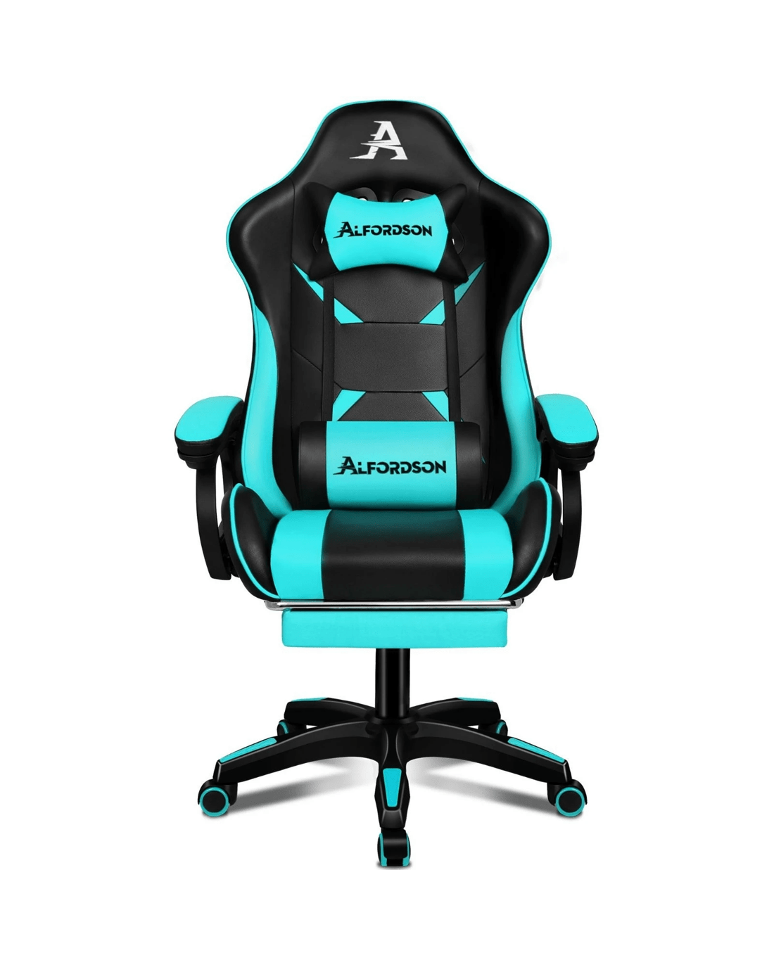 Sold by Aussie Union GroupAlfordson Gaming Office Chair Massage Racing Computer Seat Footrest Leather - Cyan