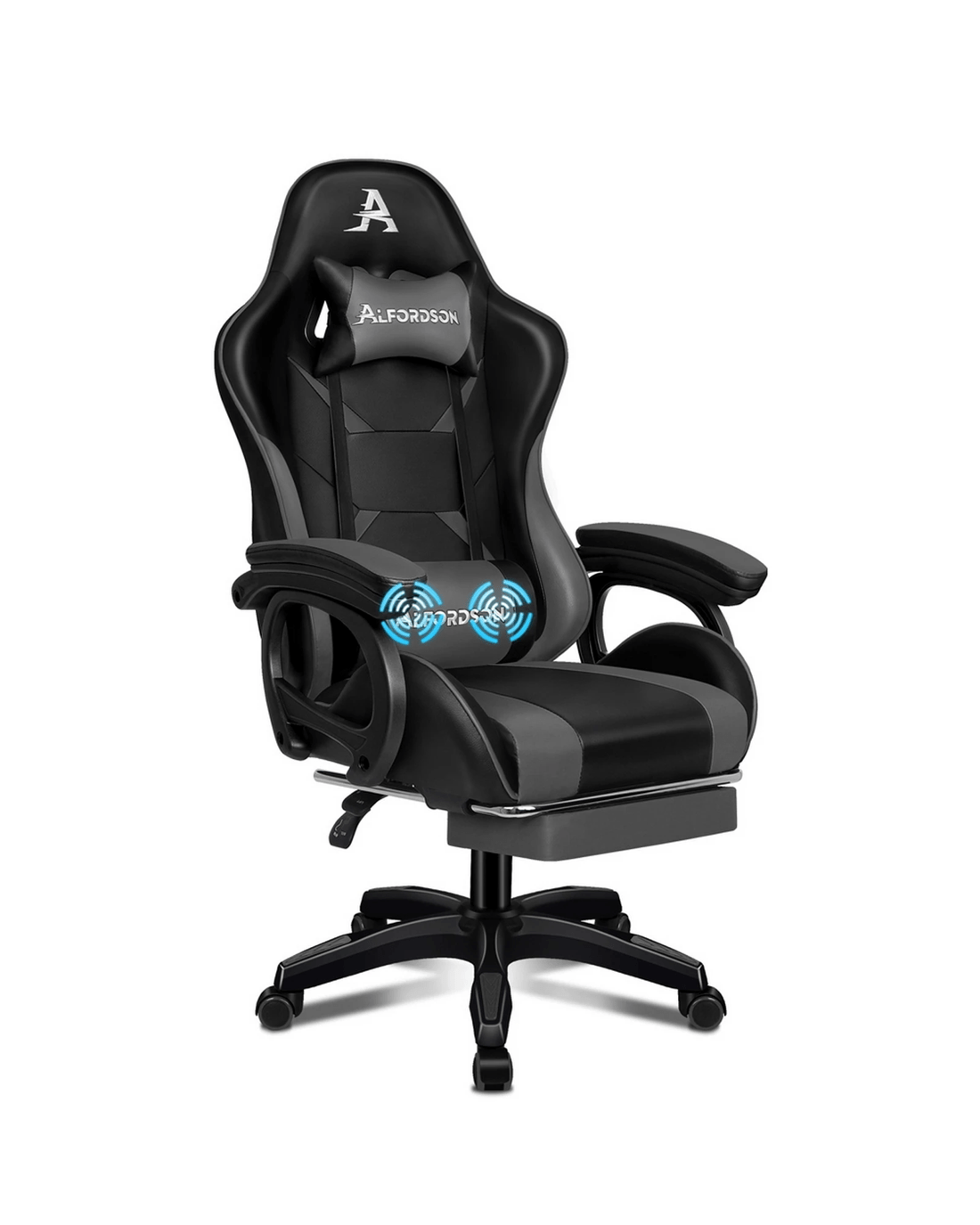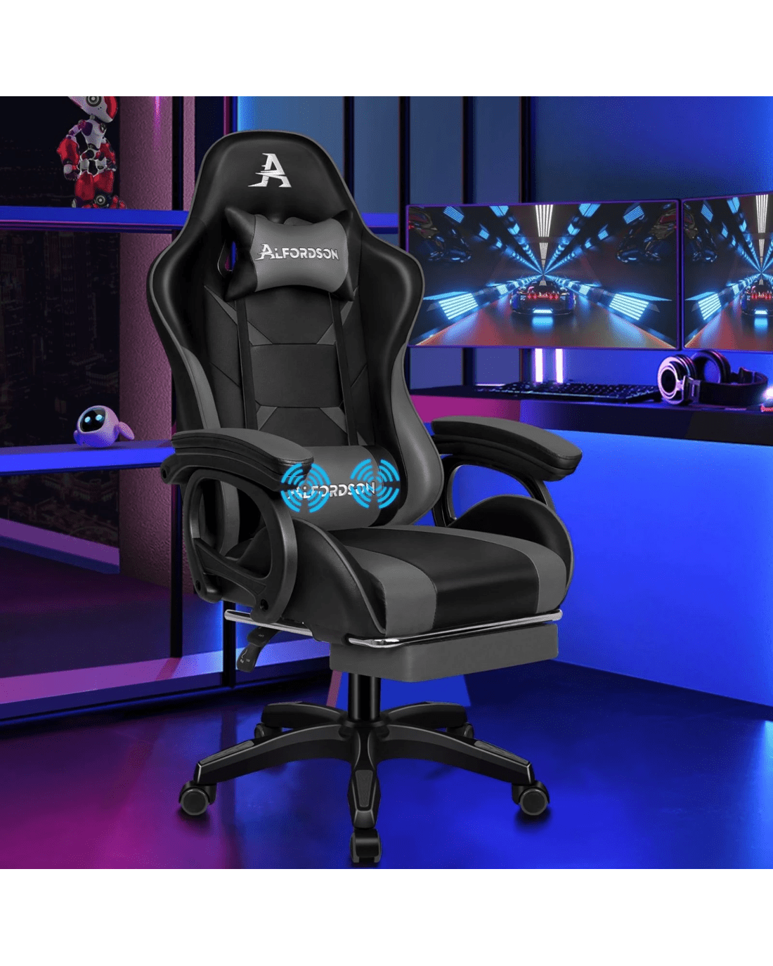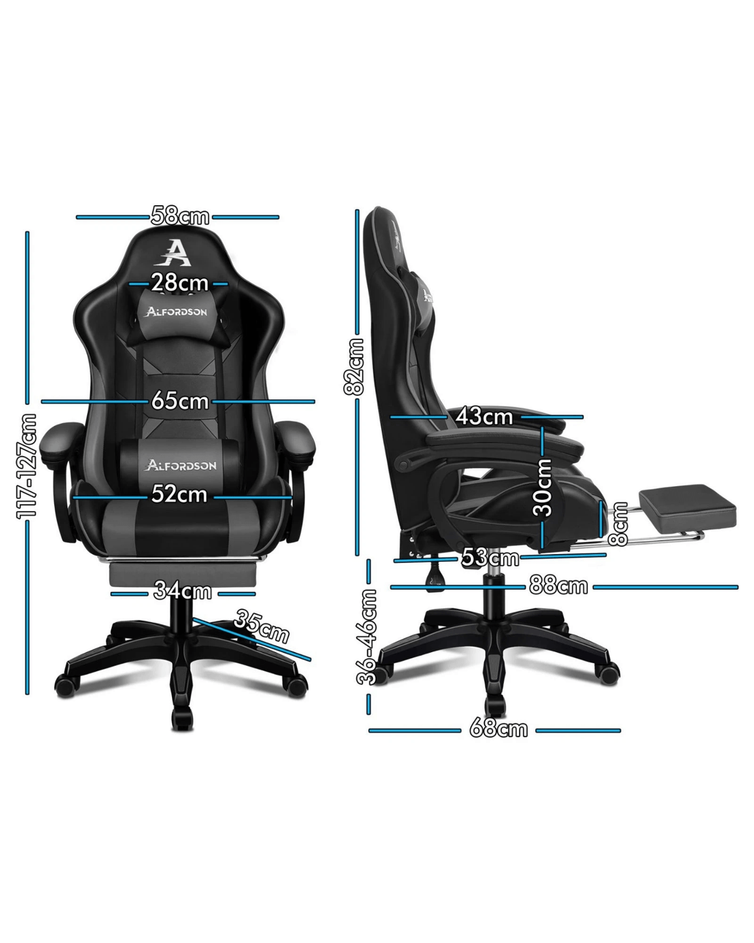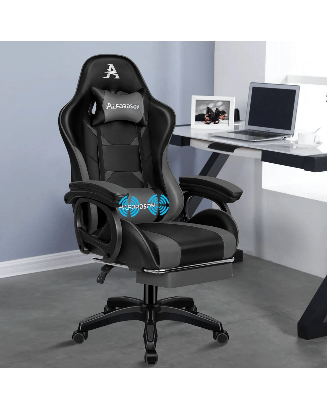 Sold by Aussie Union GroupAlfordson Gaming Office Chair Massage Racing Computer Seat Footrest Leather - Grey