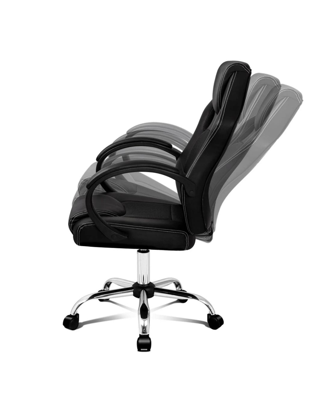 It features a sturdy chrome base with scuff protectors and 360 degree swivel. The double-stitched upholstery crafted from premium PU leather ensures optimal durability and easy cleaning. The breathable mesh inserts ensures well ventilated and comfort to sit on.
