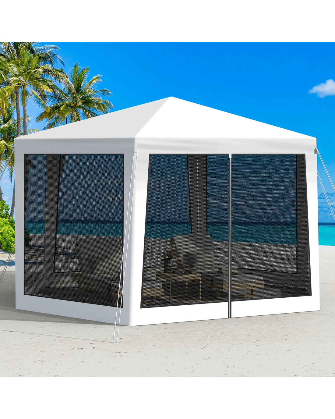 * 4 anti-insect mesh walls with double-sided zippers for different usage