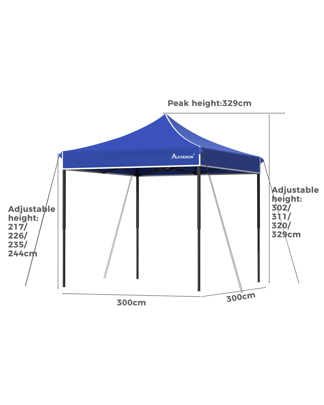 * Adjustable height: Centre 302/311/320/329cm, Edge 217/226/235/244cm