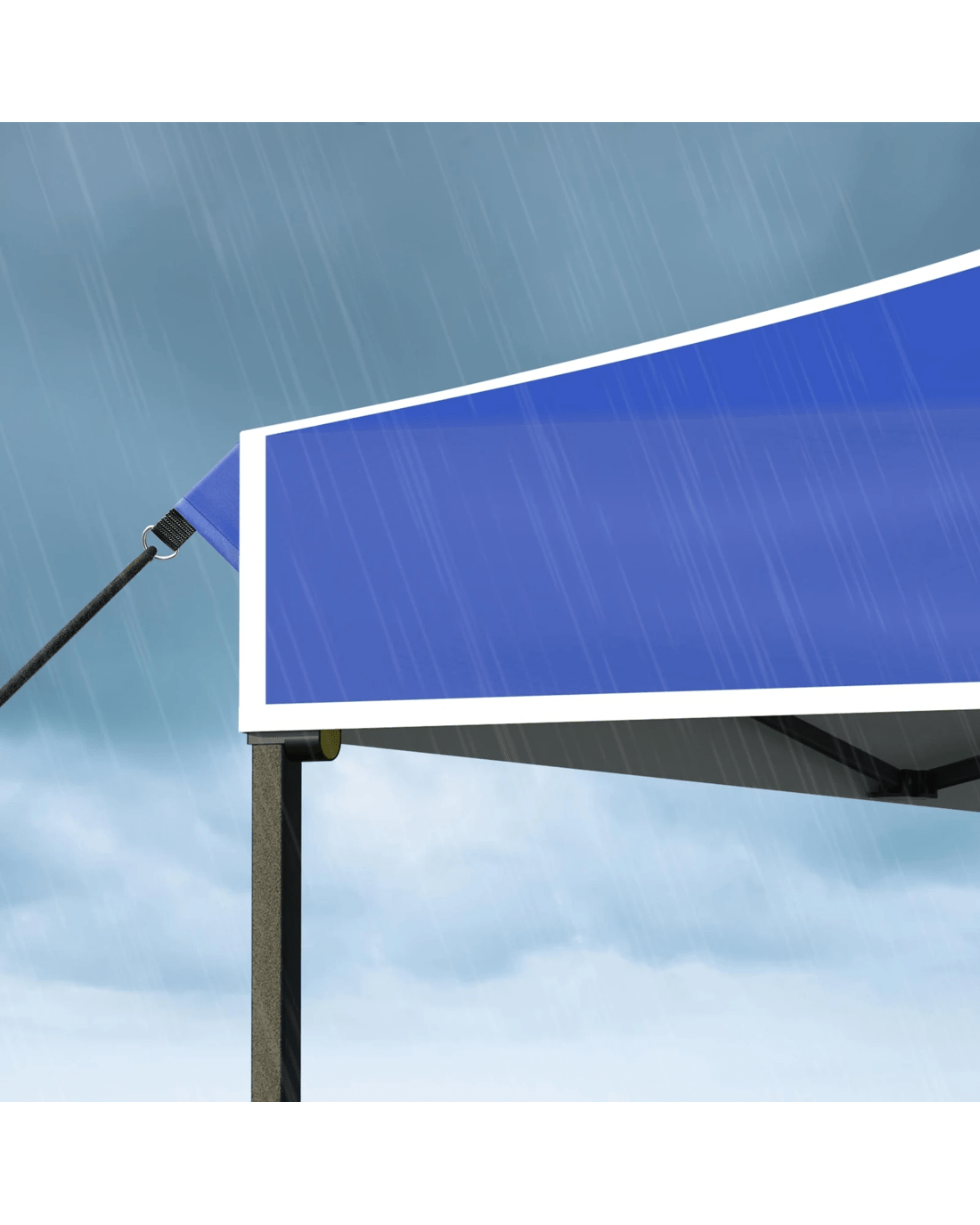 Crafted with premium Oxford fabric with silver PU coating, our gazebo is designed to withstand the unique challenges of Australian weather, including intense sun, heavy rain, and occasional wind gusts. Its sturdy frame with 4 ropes and 4 pegs ensures stability and durability, while the canopy provides ample shade and protection from harmful UV rays.