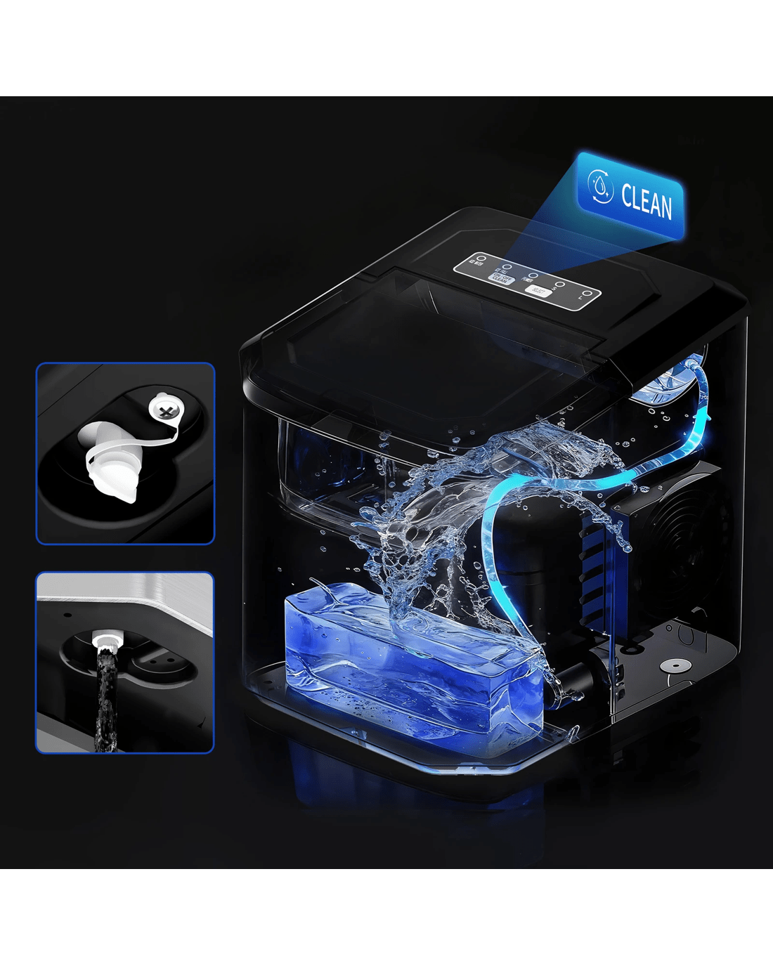 Effortless self-cleaning system food-grade 304 stainless steel and certified PP plastic ensure every batch of ice is fresh-tasting. Maintain optimal performance with the advanced self-clean function - simply add water, press the "clean" button, and drain. Hassle-free maintenance has never been this simple.
