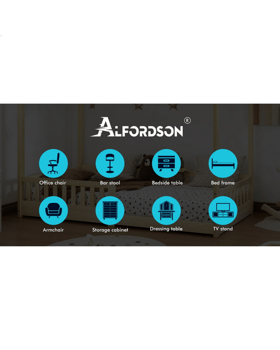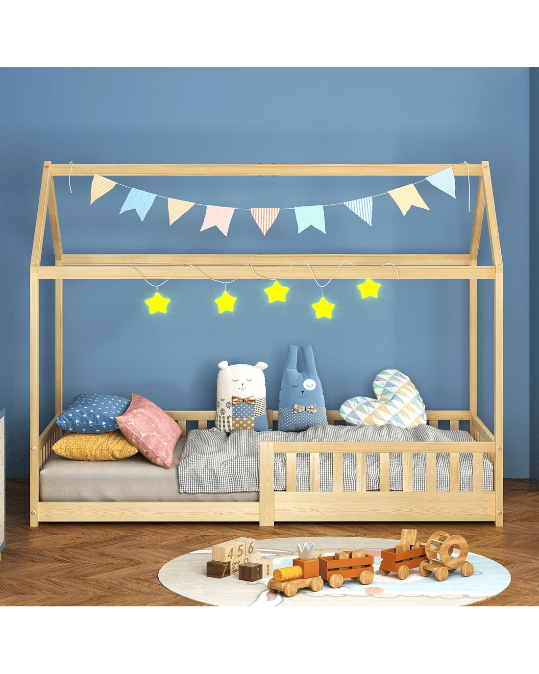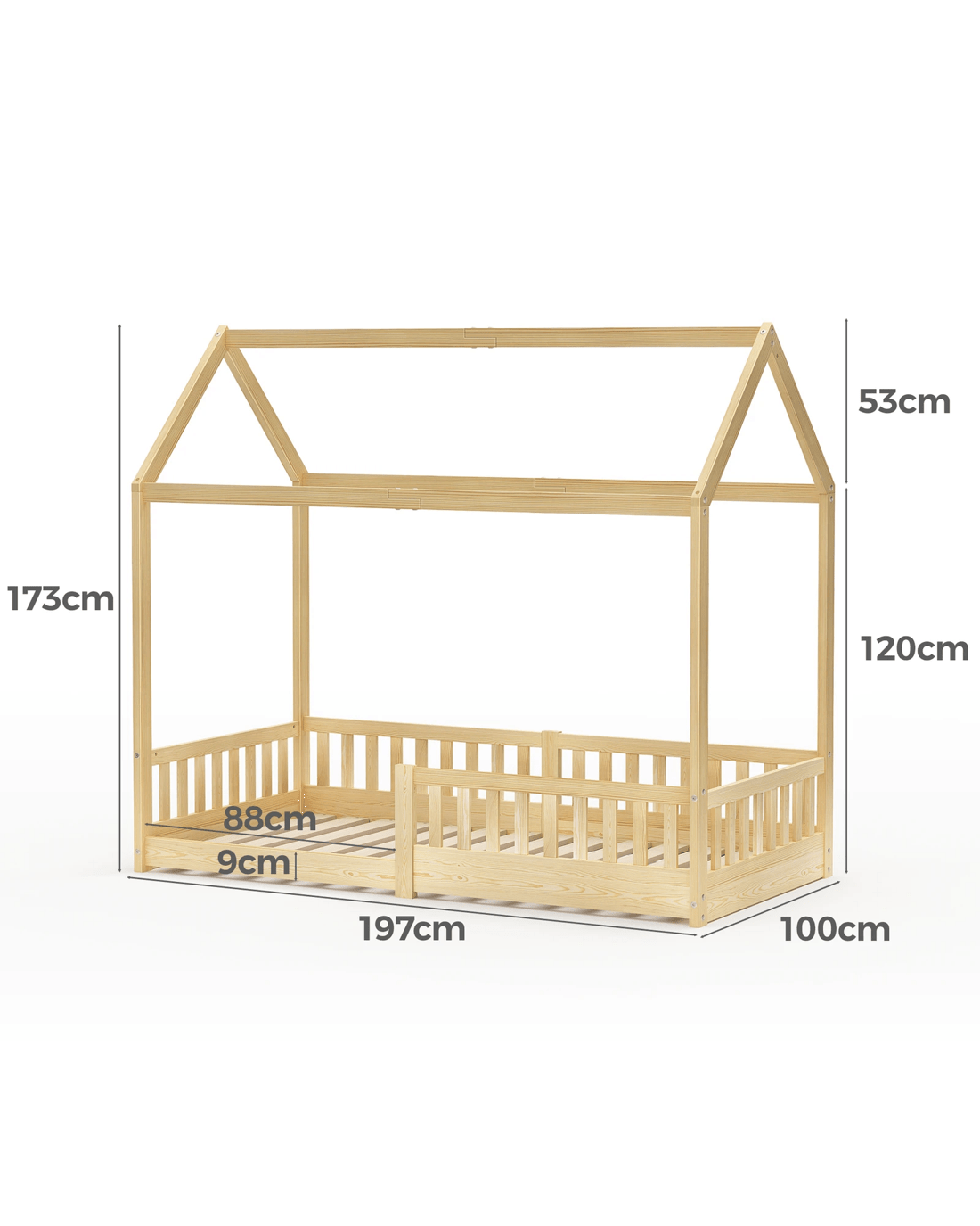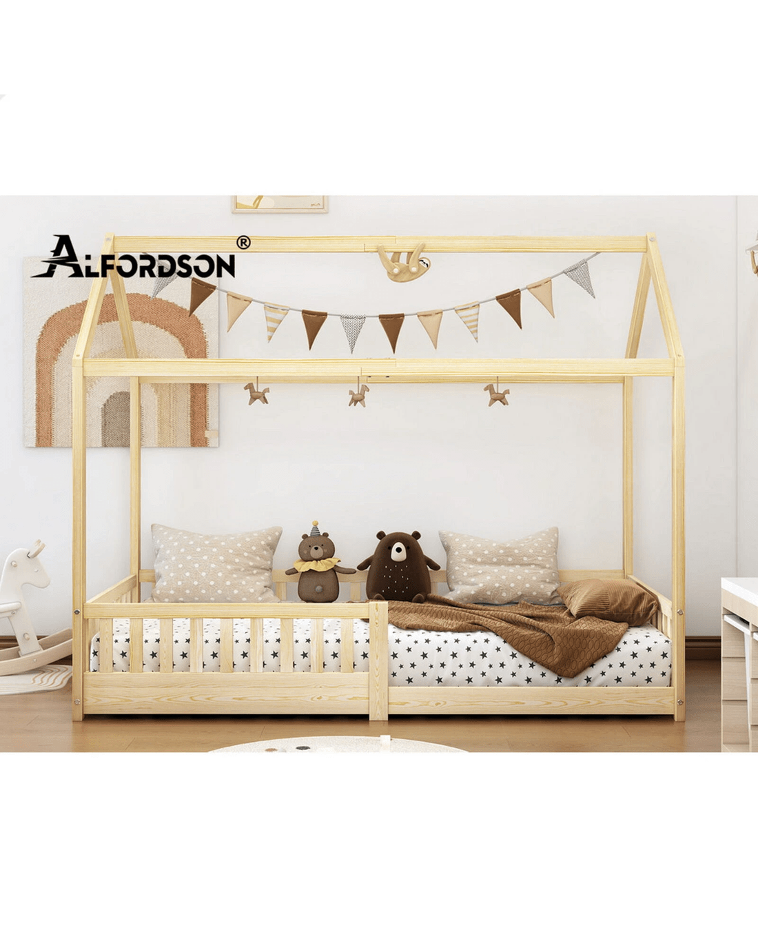 Alfordson Kids Bed Frame Wooden Timber Single House Frame Platform Base - Natural