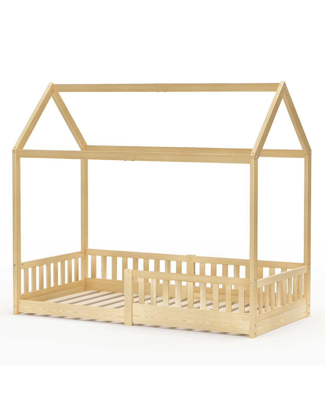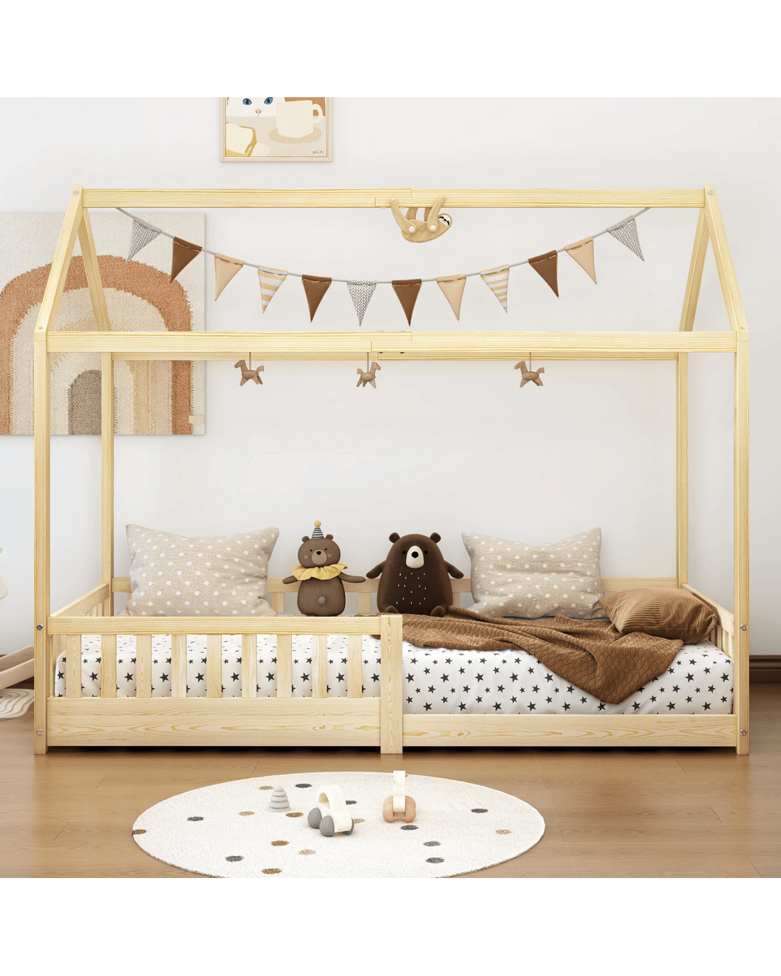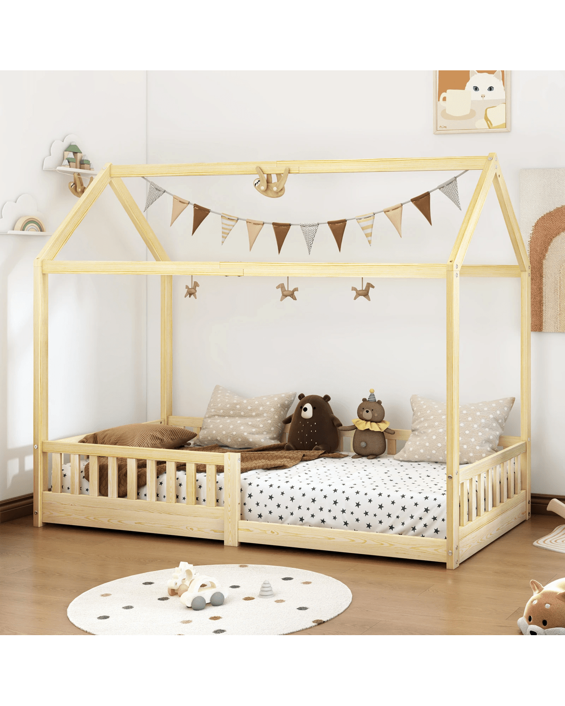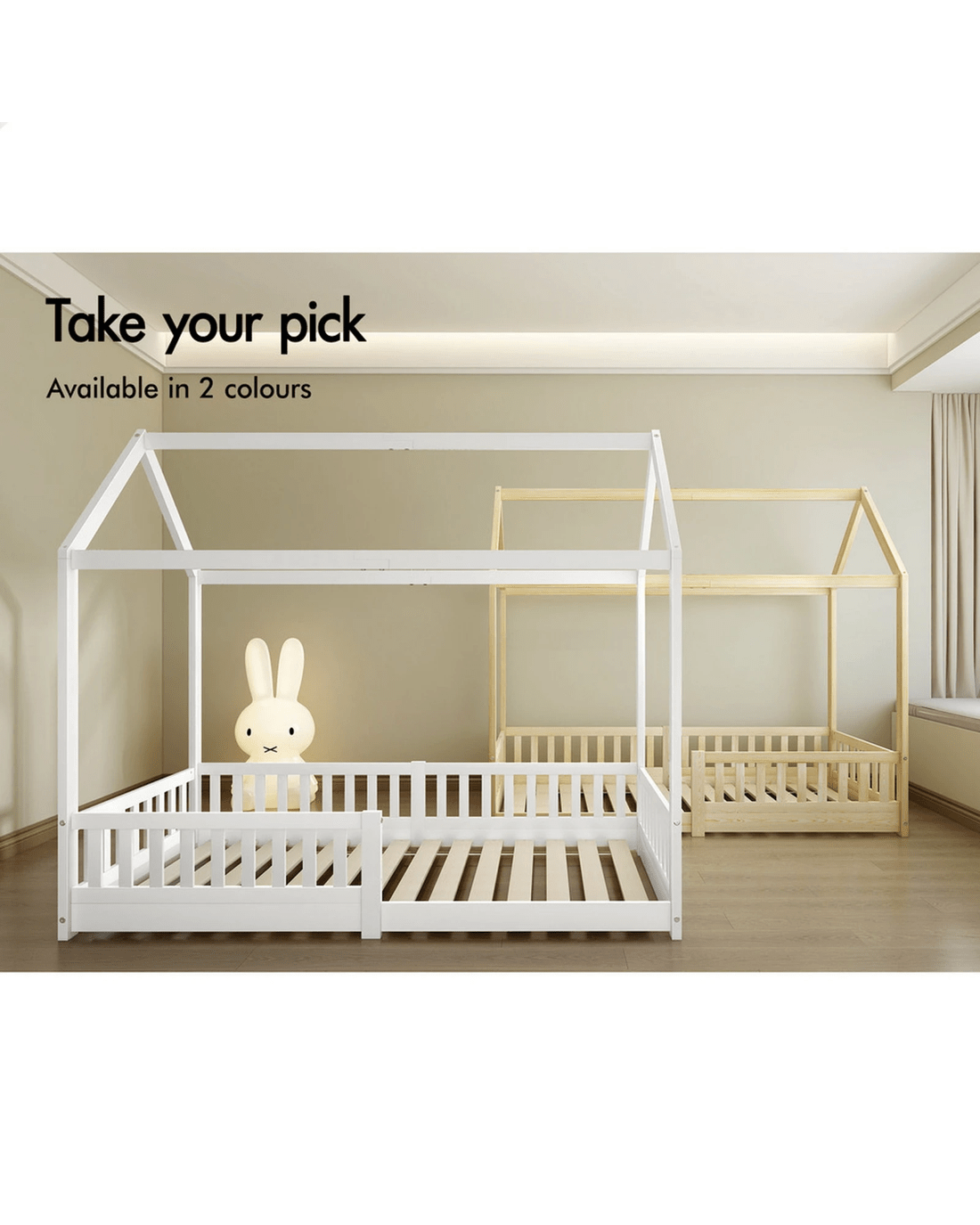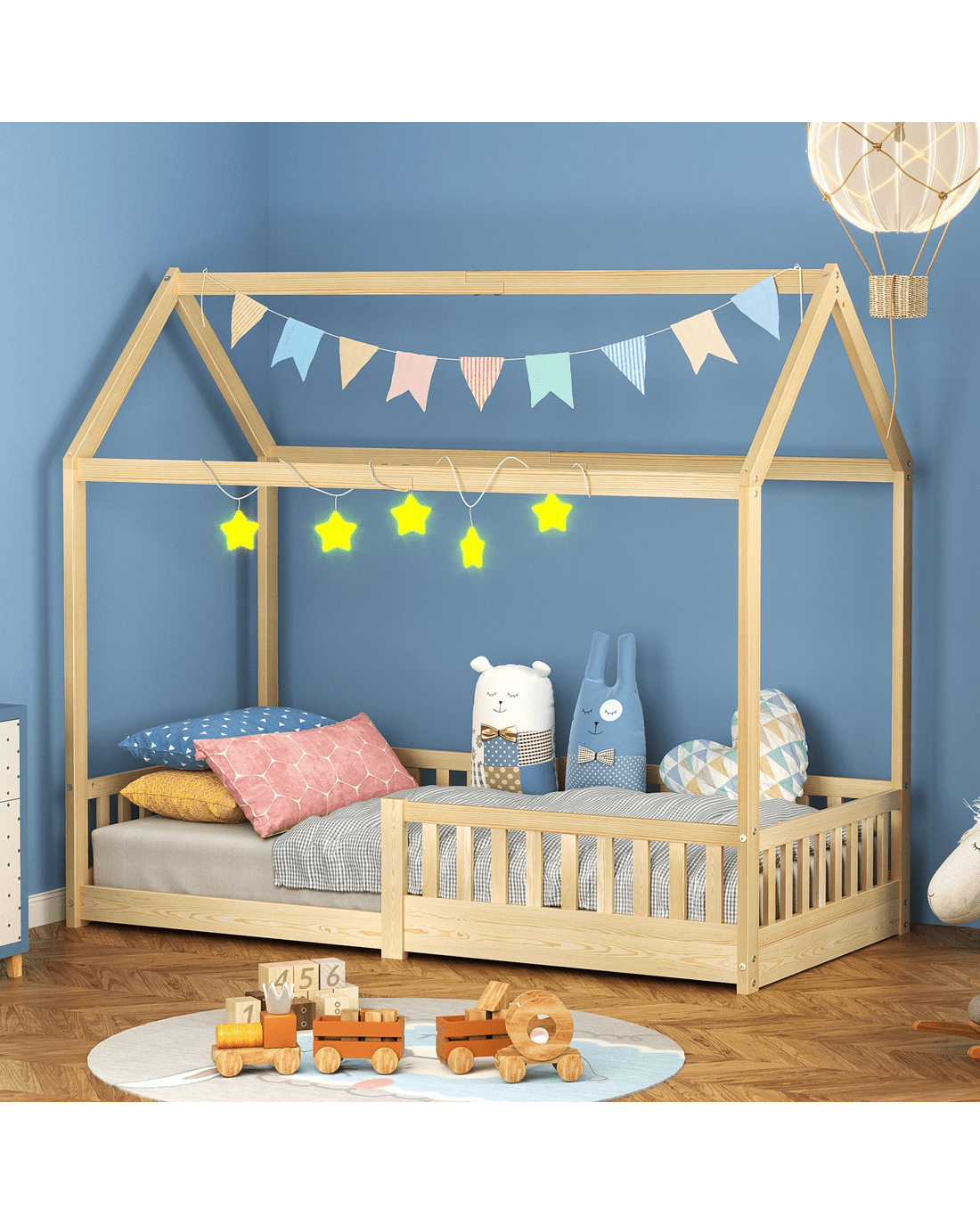 Alfordson Kids Bed Frame Wooden Timber Single House Frame Platform Base - Natural