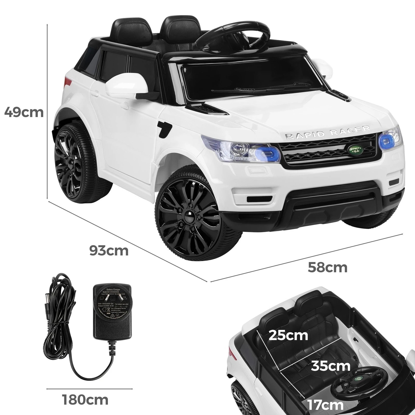 Alfordson Kids Ride On Car 12V Eletric Motor Remote Car Toy MP3 LED Light - White