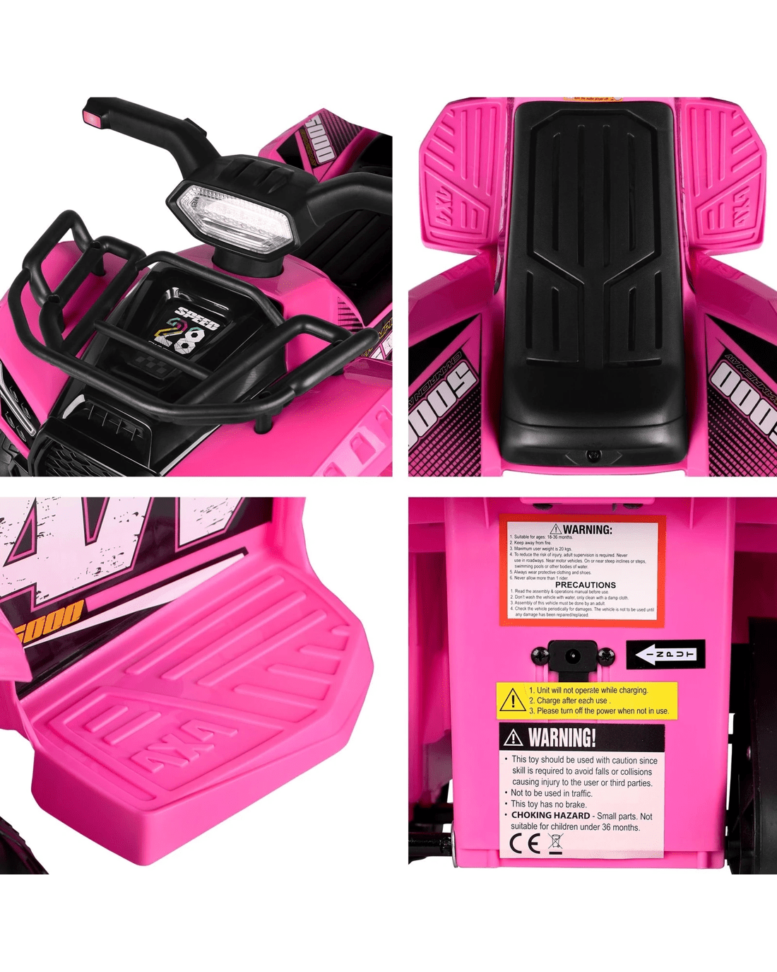 Alfordson Kids Ride On Car Electric ATV Toy 25W Motor W/ USB MP3 LED Lights - Pink