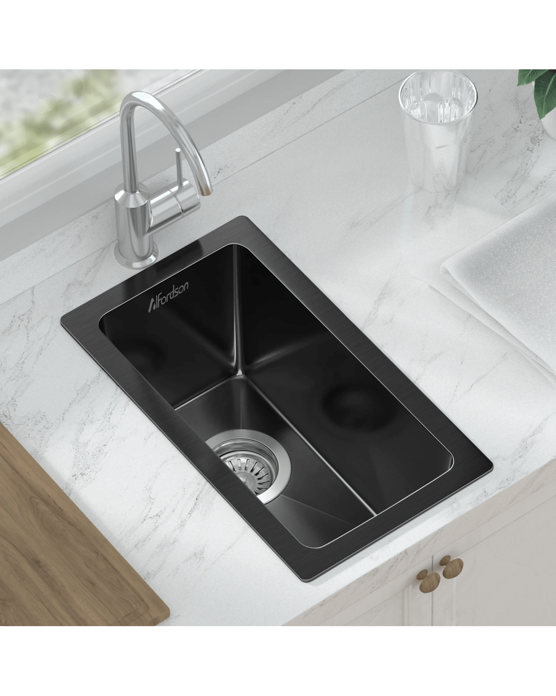 Sold by Aussie Union GroupAlfordson Kitchen Sink 25x45cm Stainless Steel Basin Single Bowl - Black