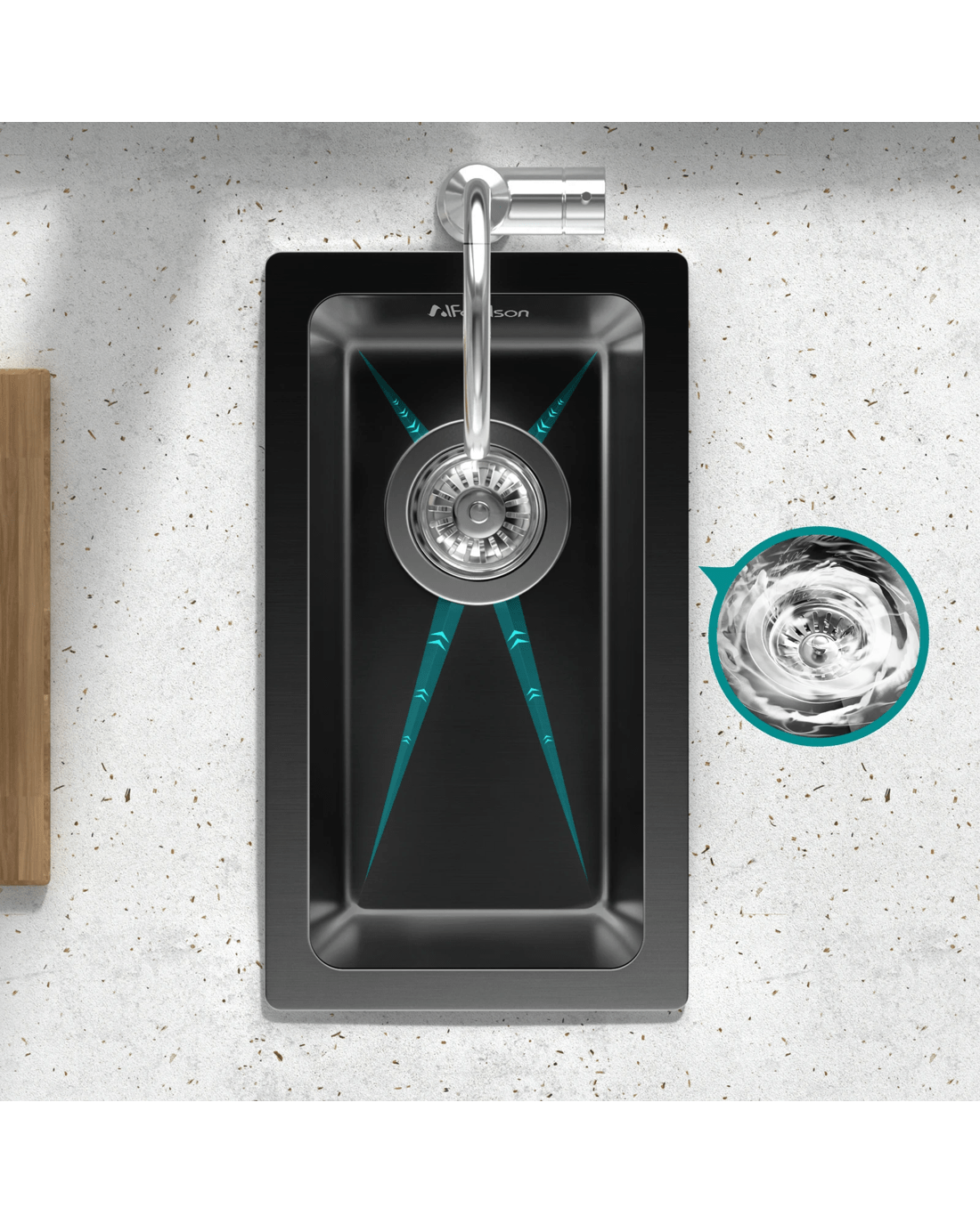 The deep and wide bowl is thoughtfully designed to accommodate most of the large pots and pans, enhancing practicality for all your kitchen tasks. R10 rounded corners are not merely safety-enhancing; they also simplify the cleaning process, making this sink a paragon of user-friendly design.