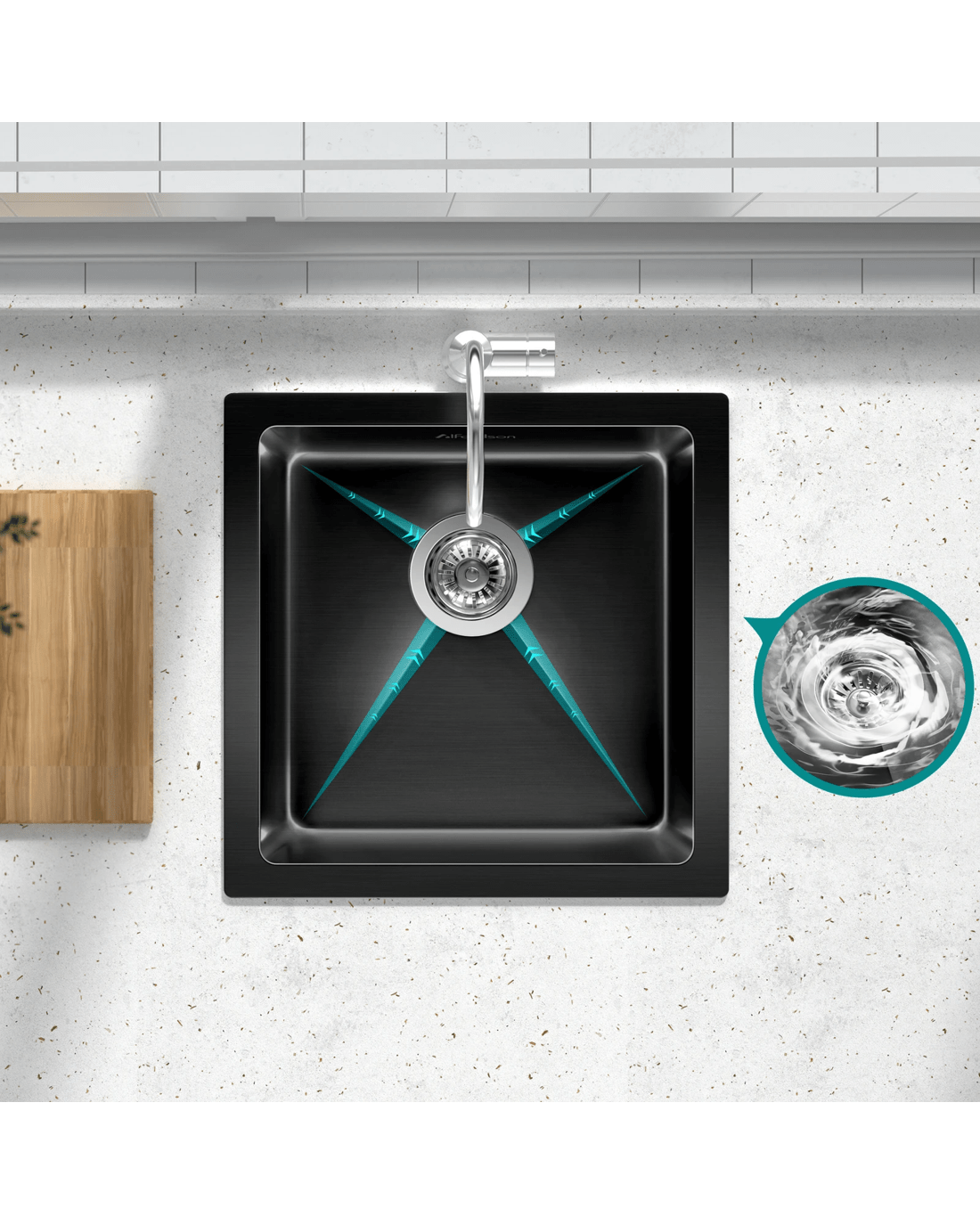The surface the kitchen sink is treated with an advanced nano-coating, making it both scratch-proof and oil-proof. This innovative feature not only enhances the sink's resilience but also provides a bacteria-free and lotus effect surface, ensuring optimal hygiene and simplifying maintenance.