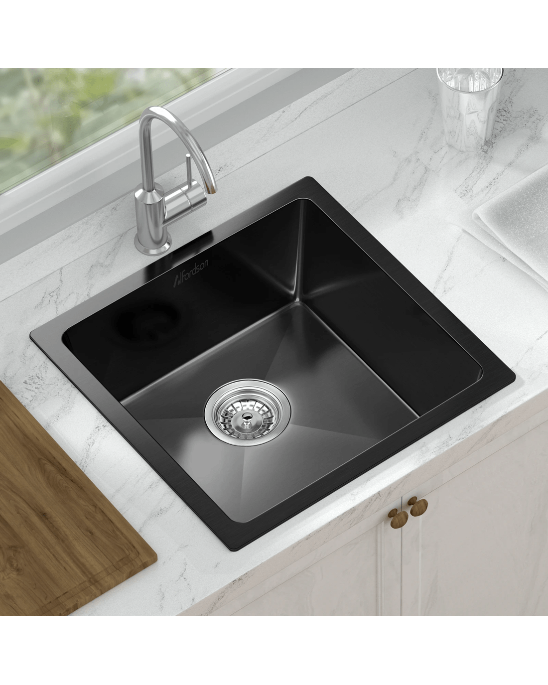 Sold by Aussie Union GroupAlfordson Kitchen Sink 44x44cm Stainless Steel Basin Single Bowl - Black