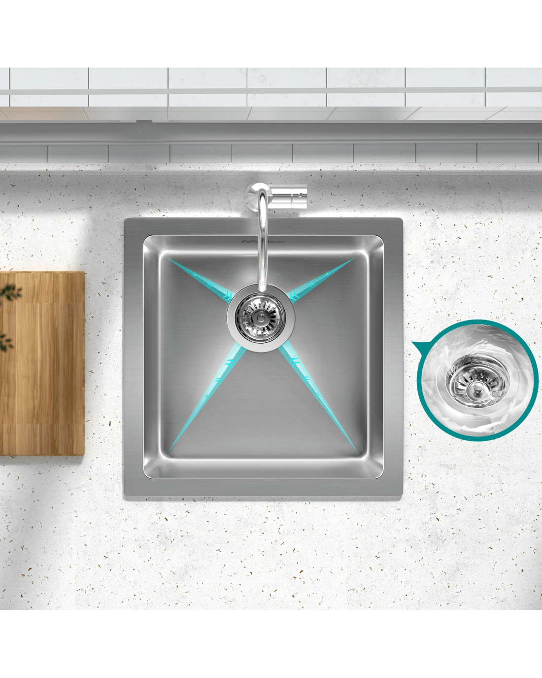 We also prioritize environmental considerations and user comfort. The sink includes eco-friendly anti-condensation coating, which reduces moisture accumulation underneath the basin. Additionally, five sound-deadening pads are strategically placed to minimize noise during use, ensuring a quieter kitchen environment.
