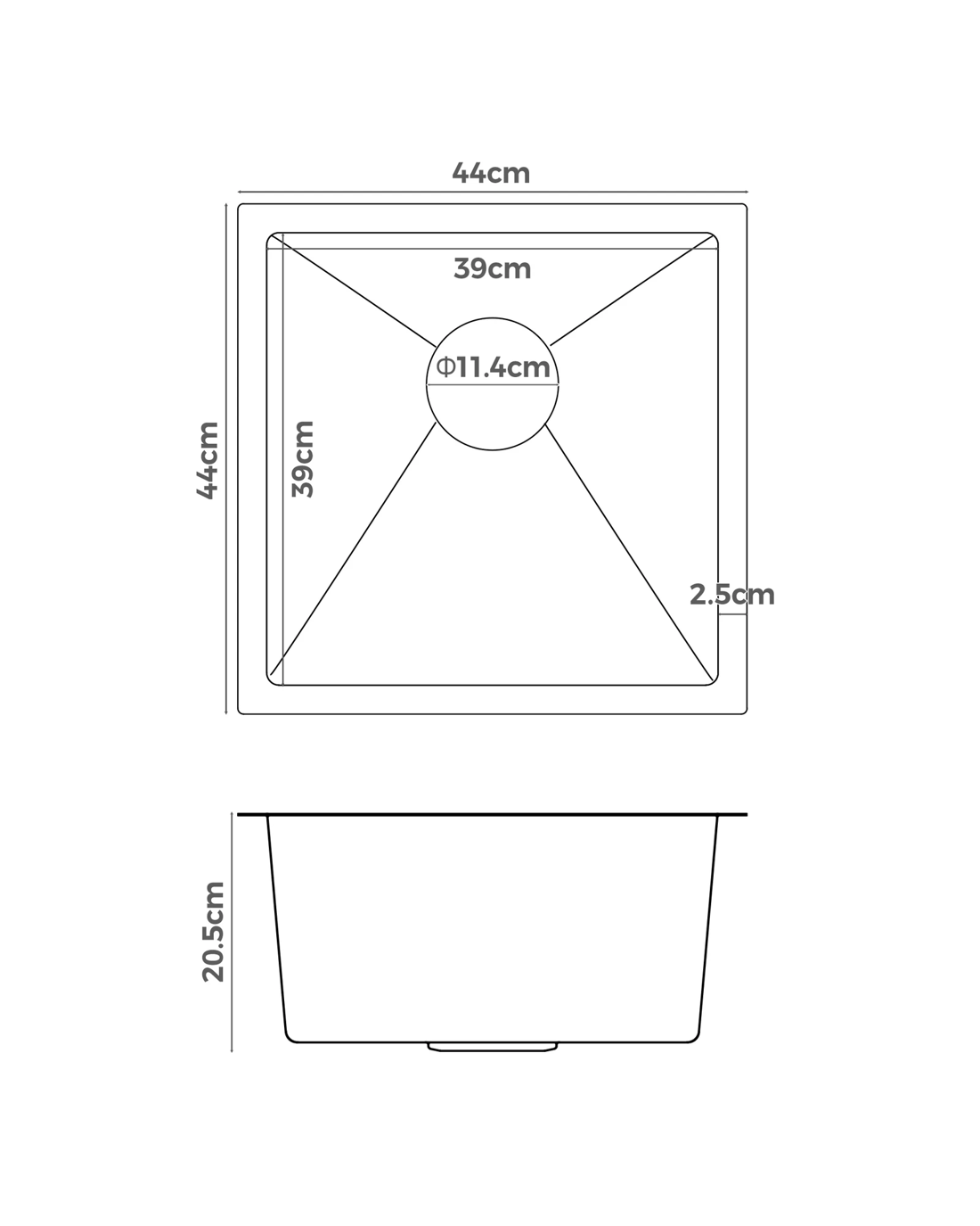 * Bowl dimensions: 390mm x 390mm x 195mm
