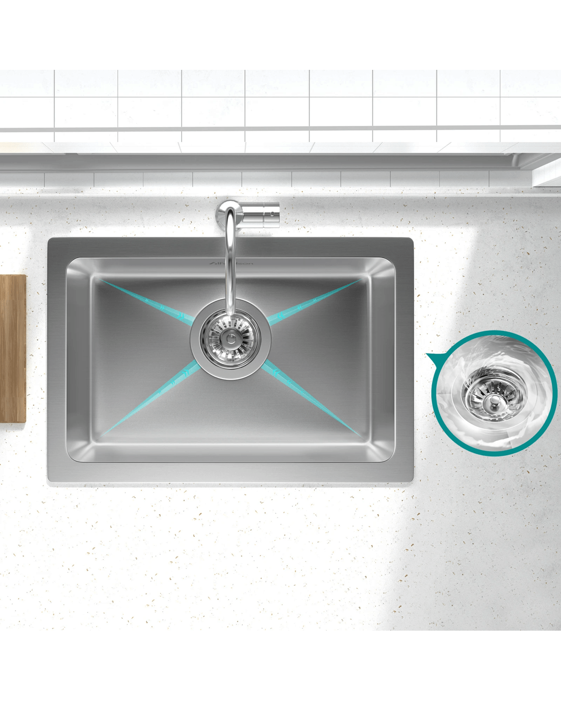 We also prioritize environmental considerations and user comfort. The sink includes eco-friendly anti-condensation coating, which reduces moisture accumulation underneath the basin. Additionally, five sound-deadening pads are strategically placed to minimize noise during use, ensuring a quieter kitchen environment.