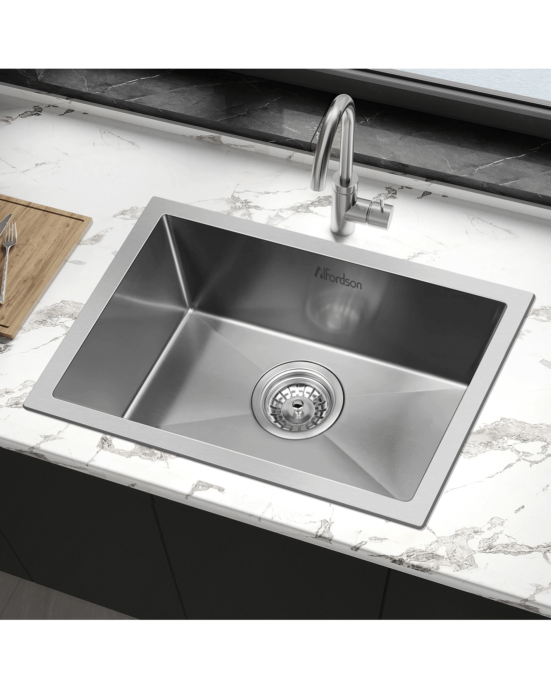 Immerse yourself in the ultimate kitchen upgrade with Alfordson stainless steel sink, crafted from premium 304 stainless steel, along with a robust 3mm edge thickness, ensuring not only impeccable style but unmatched durability.