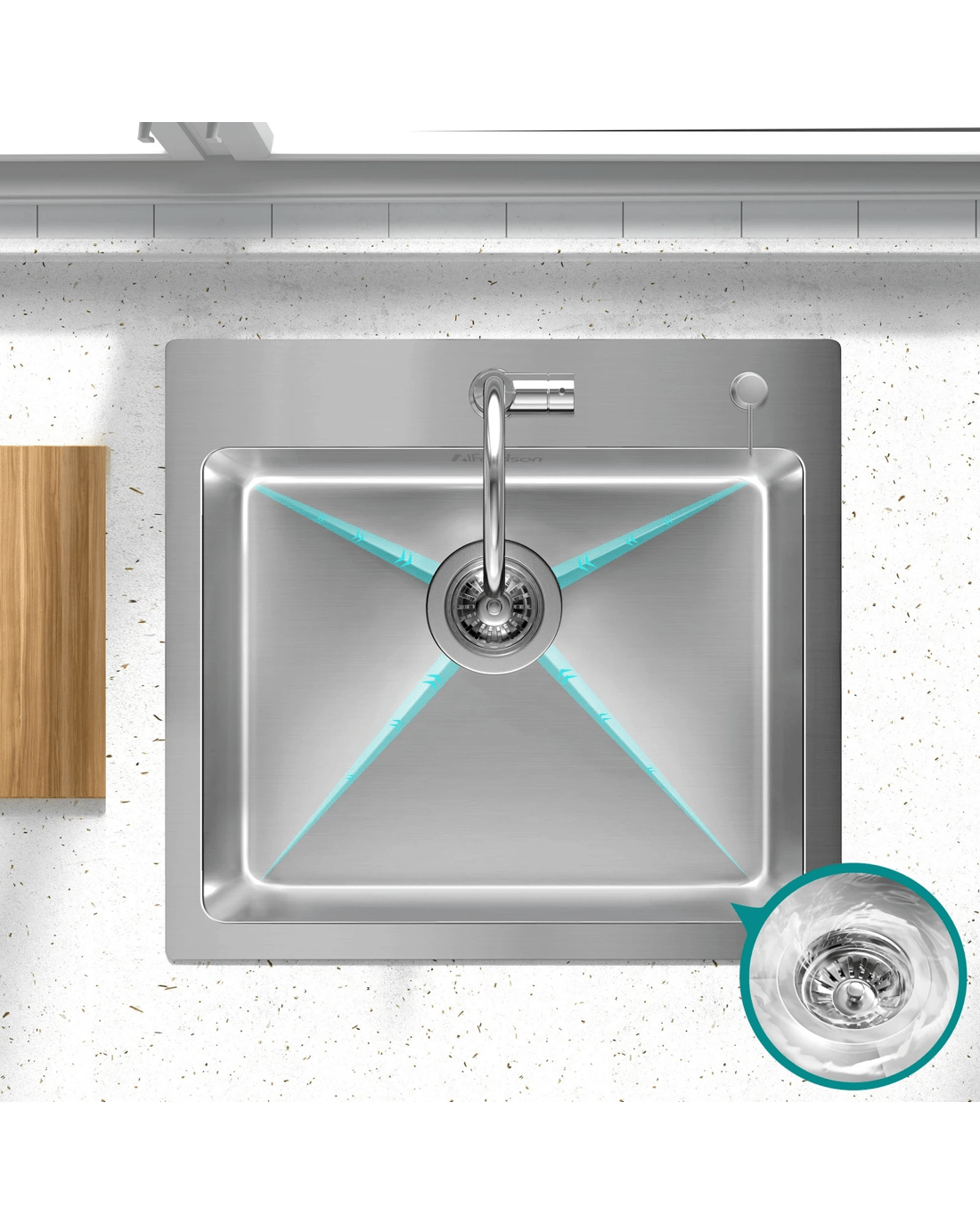 We also prioritize environmental considerations and user comfort. The sink includes eco-friendly anti-condensation coating, which reduces moisture accumulation underneath the basin. Additionally, five sound-deadening pads are strategically placed to minimize noise during use, ensuring a quieter kitchen environment.