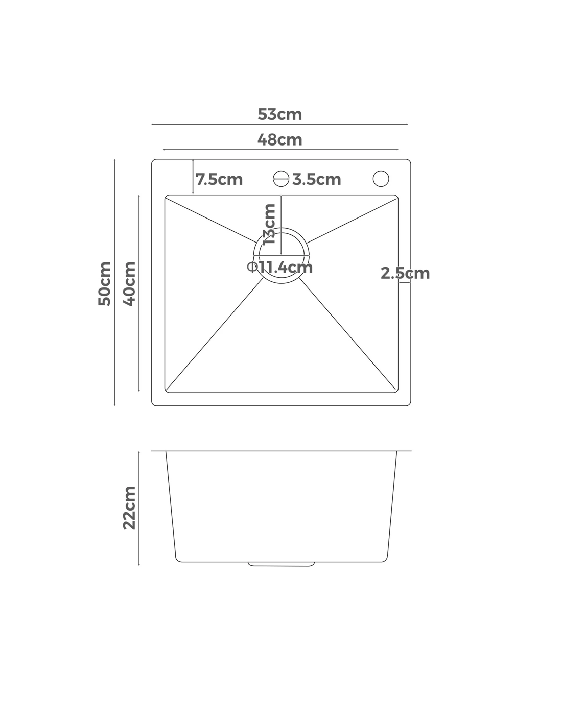 * Bowl dimensions: 480mm x 400mm x 210mm