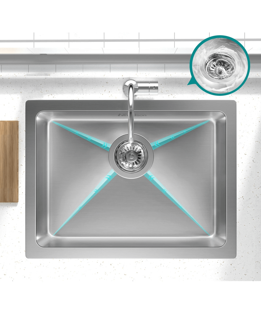 The deep and wide bowl is thoughtfully designed to accommodate most of the large pots and pans, enhancing practicality for all your kitchen tasks. R10 rounded corners are not merely safety-enhancing; they also simplify the cleaning process, making this sink a paragon of user-friendly design.